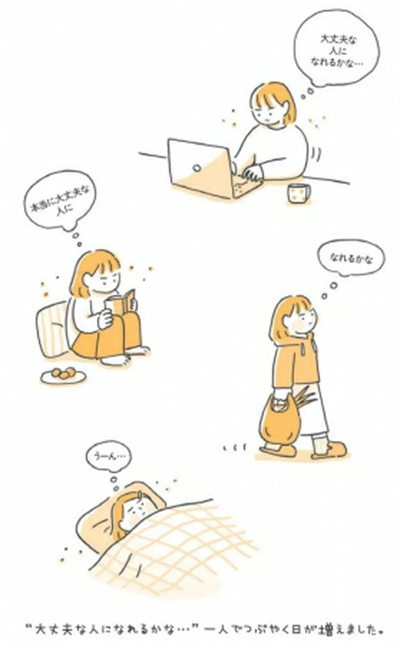 あたたかくリラックスした絵柄が人々の心を掴み、多岐にわたって活躍している韓国人イラストレーターのホン・ジョファン。彼女が仕事に追われ、不安に苛まれ心を病む。都会での生活に終止符を打ち、精神科に通いながら自身の心と向き合い、その様子を絵日記風4コマエッセイで出版。瞬く間に共感や反響を生んだ。