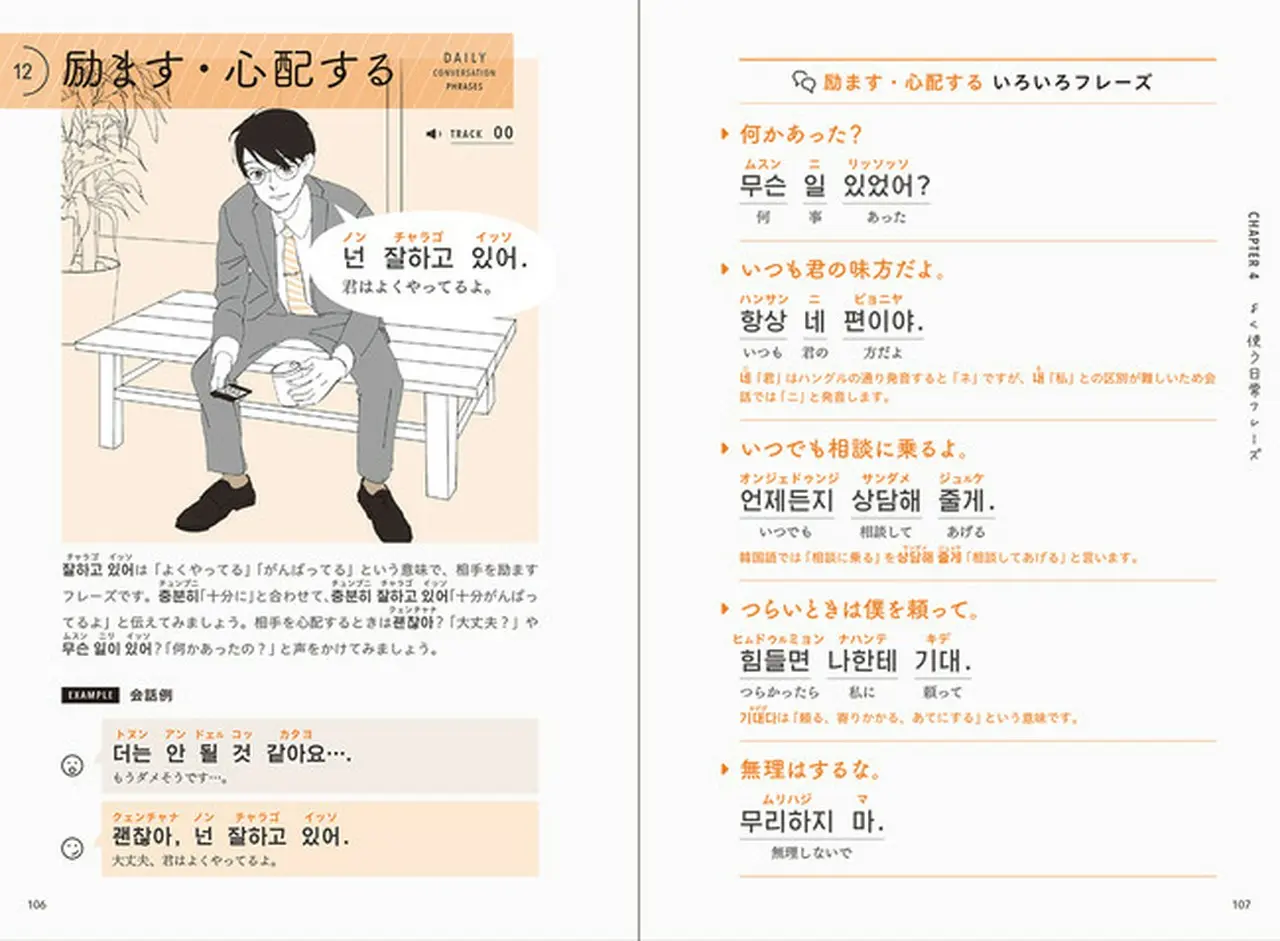 本で紹介した韓国語フレーズ・日本語訳はそれぞれ音声を聞くことができ、日本語音声は音楽原作キャラクターラッププロジェクト「ヒプノシスマイク」等で活躍中の神尾晋一郎さん・榊原優希さんが担当します。