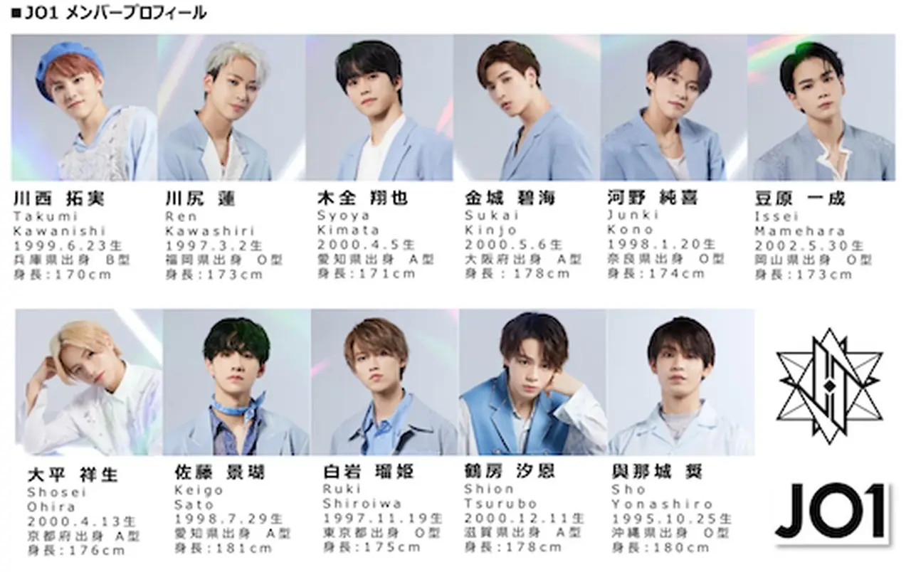 人気サバイバルオーディション番組『PRODUCE 101 JAPAN』において、“国民プロデューサー”と呼ばれる視聴者による国民投票で、101人の練習生から勝ち抜いた11名によるグローバルボーイズグループ。グループ名は、「PRODUCE 101 JAPANで一緒に上を目指した練習生が1つになって、世界の頂点を目指していく」という意味を込めて『JO1』と名付けられた。
