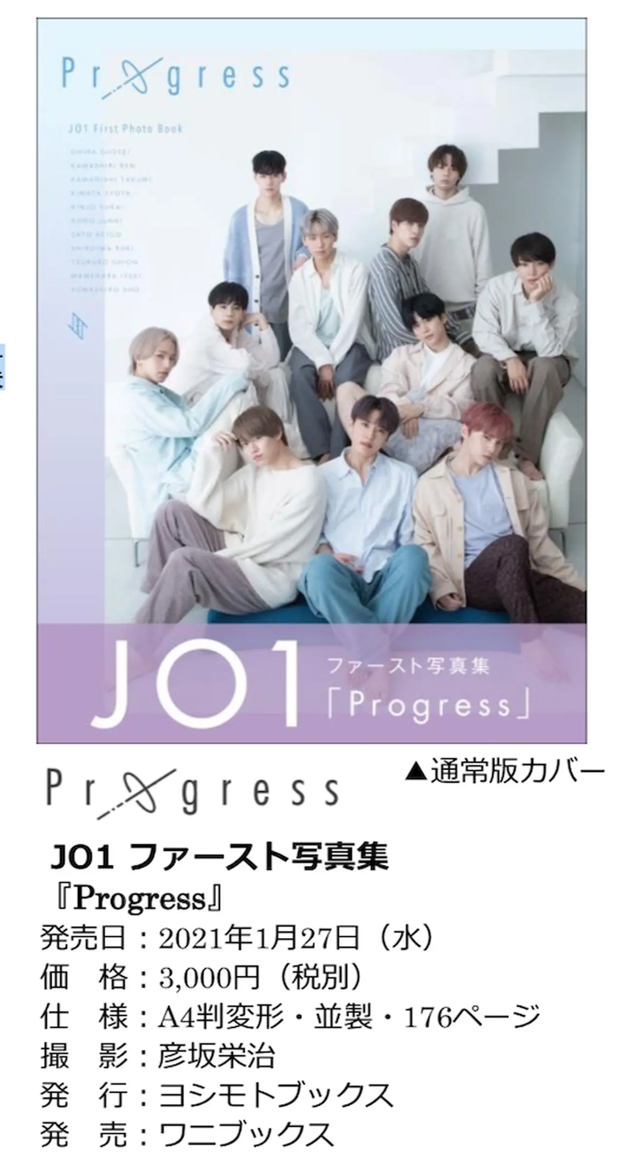 JO1 1st写真集『Progress』2021年1月27日(水)発売