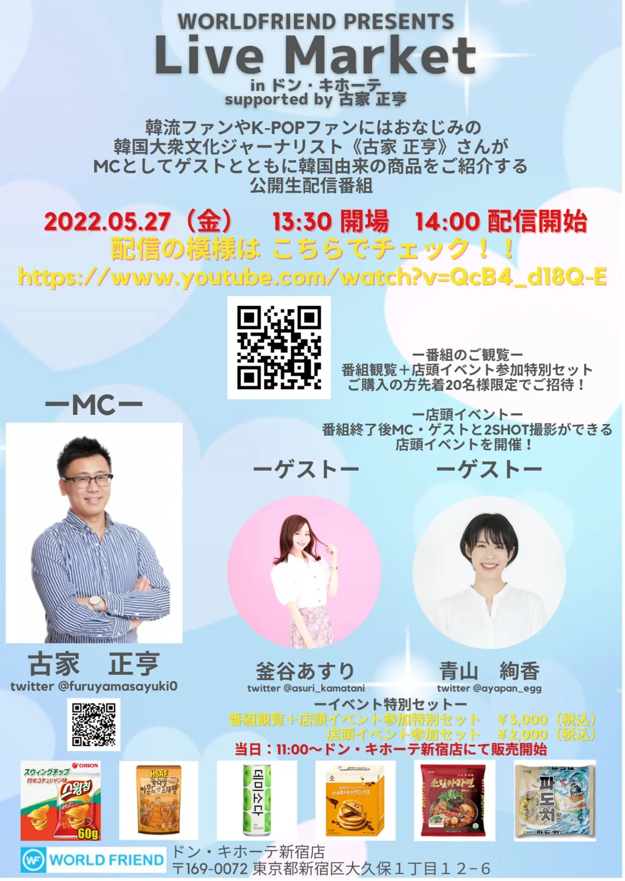 韓流ファンやK-POPファンにはおなじみの韓国大衆文化ジャーナリスト古家 正亨がドン・キホーテ新宿店にて韓国由来の商品をご紹介する【公開生配信番組】開催!!
