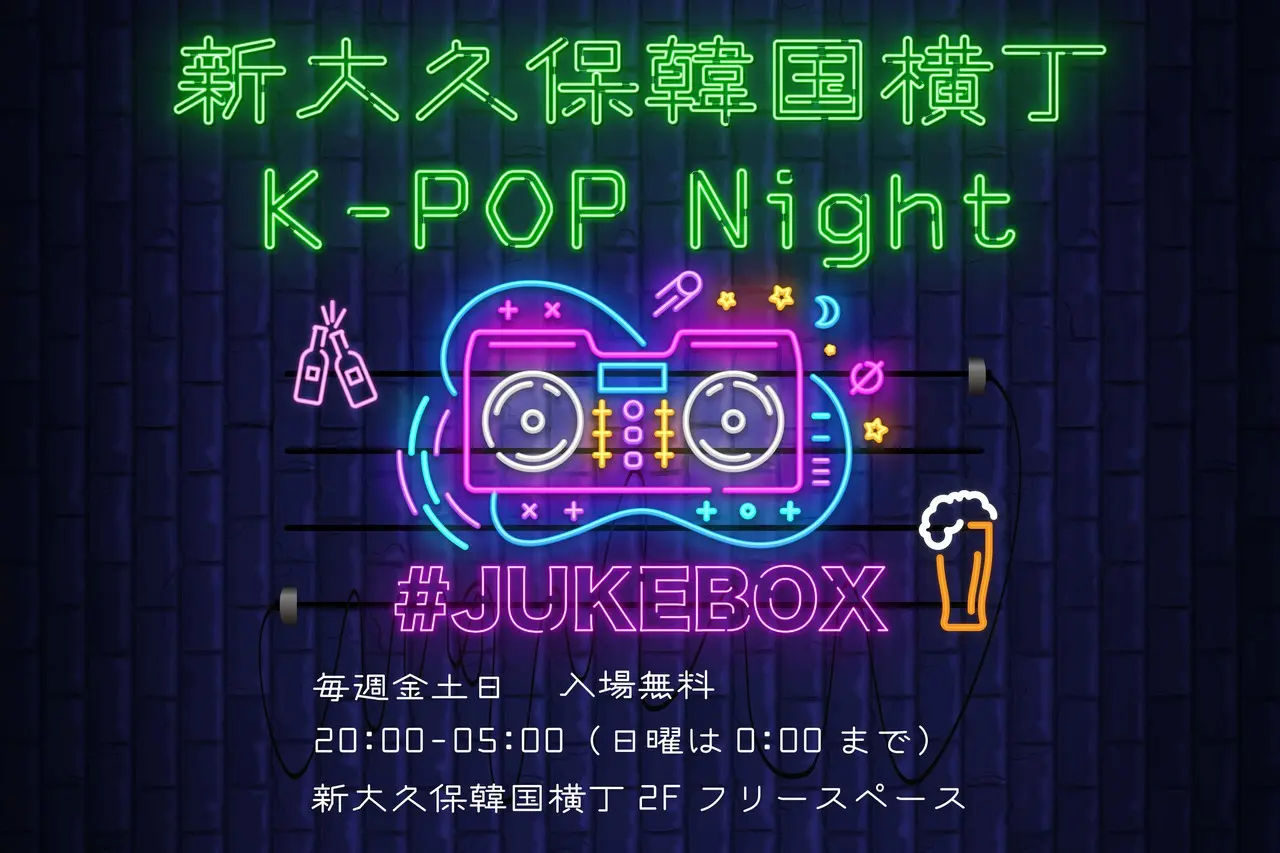 ドットシーエンターテイメント合同会社(本社:東京都港区、代表:黒田ルーク)は、新大久保に誕生した、いま話題のグルメスポット「新大久保韓国横丁」とコラボレーションし、1月6日(金)より2階フリースペースにて毎週金土日の20:00-翌5:00(日曜は19時-23時まで)K-POP DJ Night「#JUKEBOX」を開催いたします。