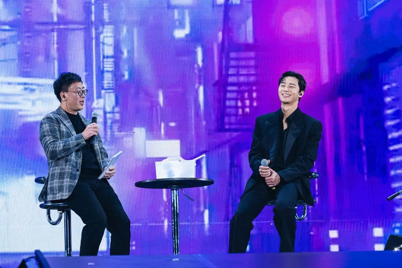 そして今回は本ライブイベントのMCである、古家正亨とのトークセッションを実施。 まず、「梨泰院クラス」が日本でも大人気だったことをお伝えすると、パクソジュンは「「梨泰院クラス」は新しい挑戦であり、成長できた作品でした。 今回のイベントを通じて日本のファンの方々、そしてドラマを見てくださった方々と久しぶりに会える時間ができて嬉しいです。」と作品を振り返りながら感想を述べました。