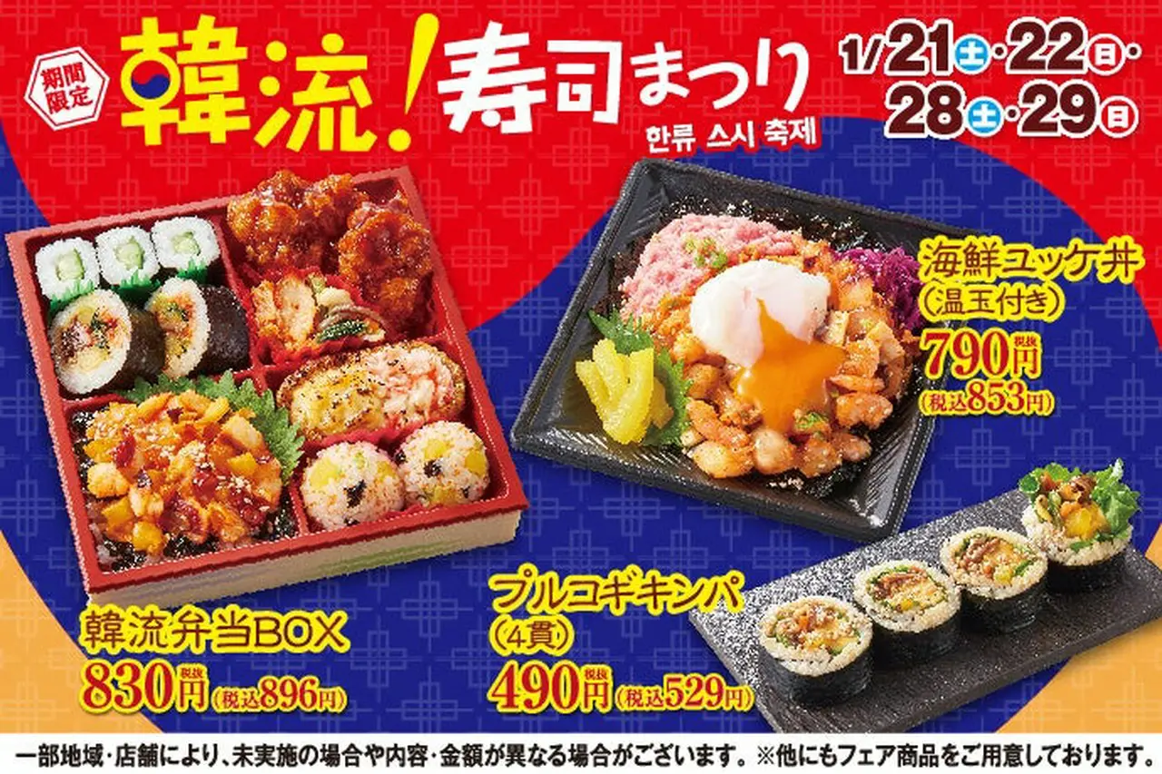 食べて韓国気分になれる、小僧寿し流の『韓流!寿司まつり』!毎回ご好評いただいております「キンパ」など、このフェアだけの特別メニューをご用意しました!!