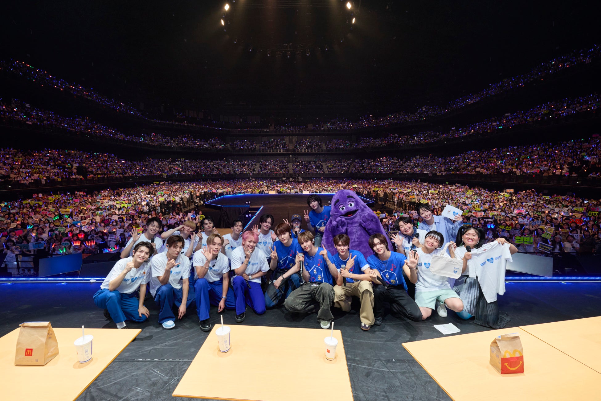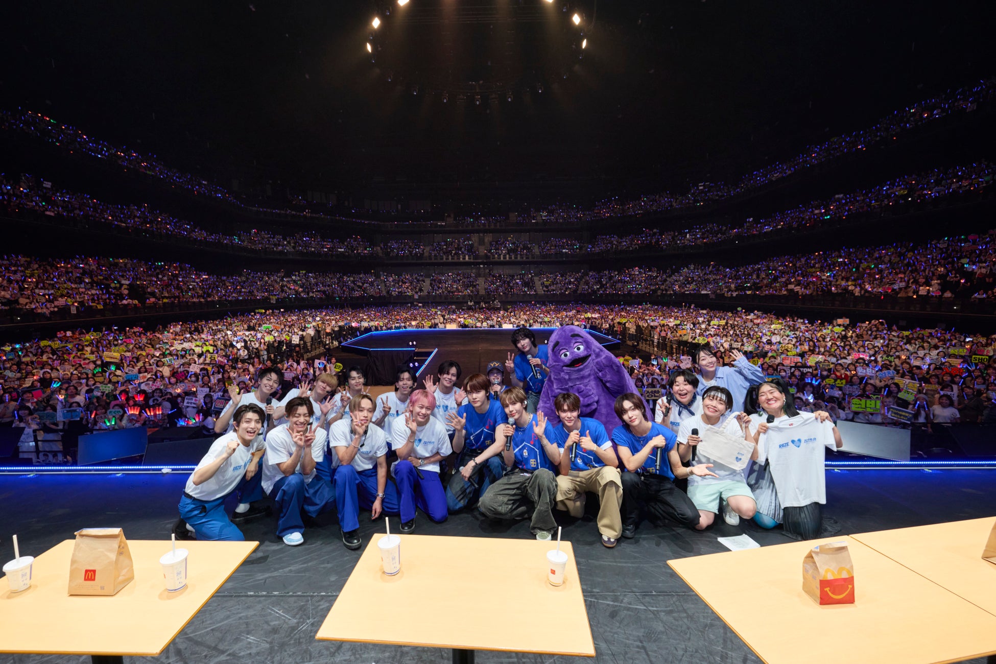 ラストは各々フェスオリジナルグッズを身につけ、超特急も含めてステージに全員集合。記念撮影を行なった後、超特急・RYOGAが「片足だけでも超特急に乗車してくれた方々は『⻘いマックの日』に参加していただけたらと思います。そして、スマイルは無料でございます。どうか毎日にスマイルを!」、RIIZE・SHOTAROが「『⻘いマックの日』、皆さんで盛り上げていきましょう! 今日はありがとうございました」とメッセー ジを送り、フェスを締めくくった。