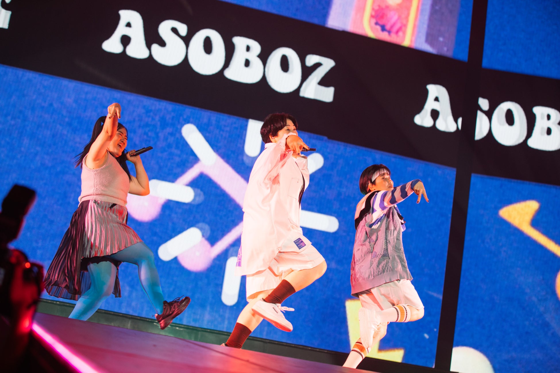 ここで雨宮とMyMが登場し、トークパートへ......と思いきやMyMのパフォーマンスタイムへ。1stシングル「ASOBOZE」でクールなラップと歌、そしてダンスを見せていく。笑顔でパフォーマンスを終え、「会場の皆さんが優しすぎます!」(Miyuki)、「一人ひとりが目を合わせてくださって、盛り上げてくださって」(Yoshiko)、「本当に温かい。ボードも作ってくださってありがとうございます」(Mahiru)と、それぞれの思いを語った。