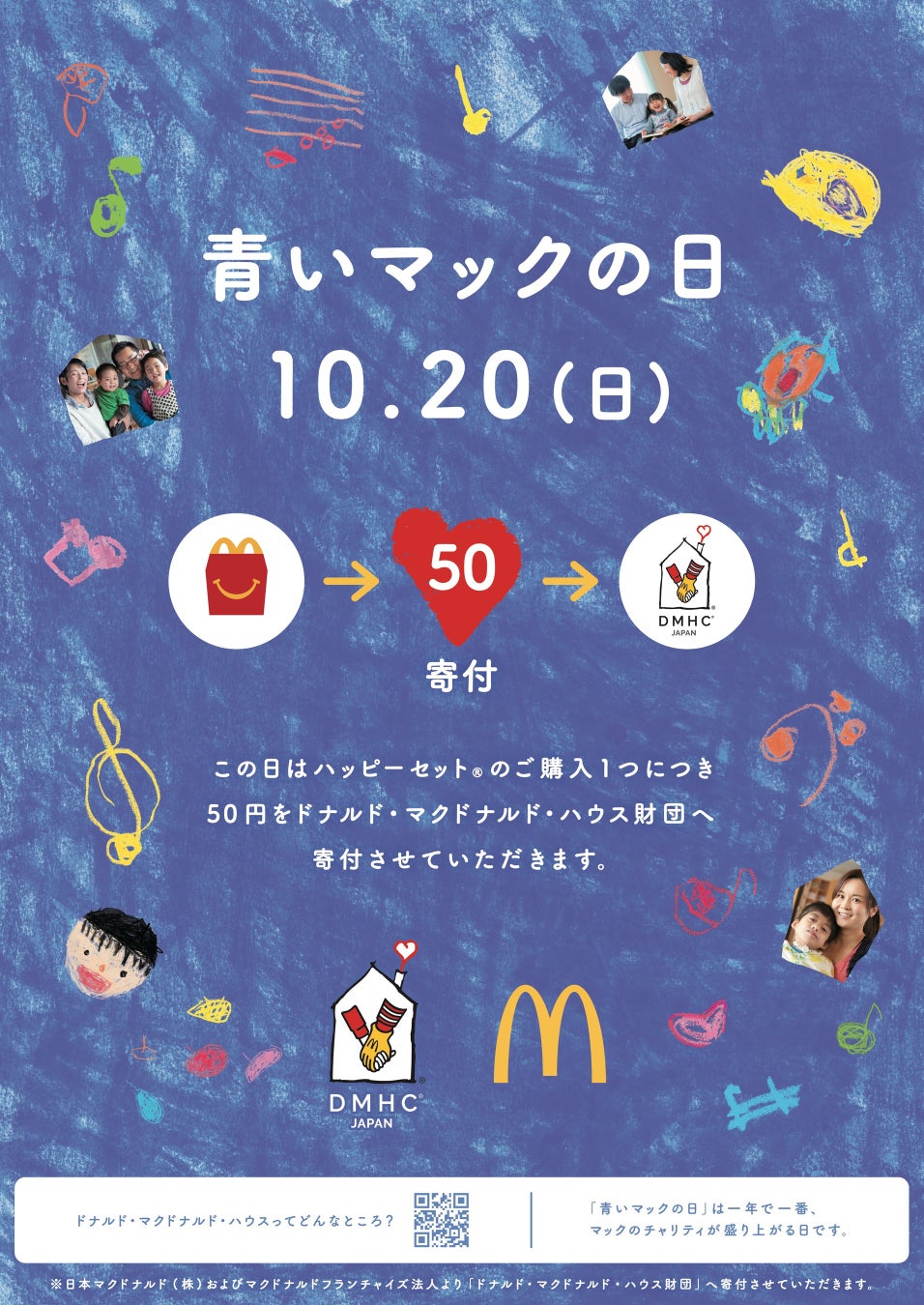 なお、“⻘いマックの日”当日以外でも、マクドナルドの店頭募金やハッピーセットの募金付きクーポンをはじめ、モバイルオーダーなどからご支援いただけます。
