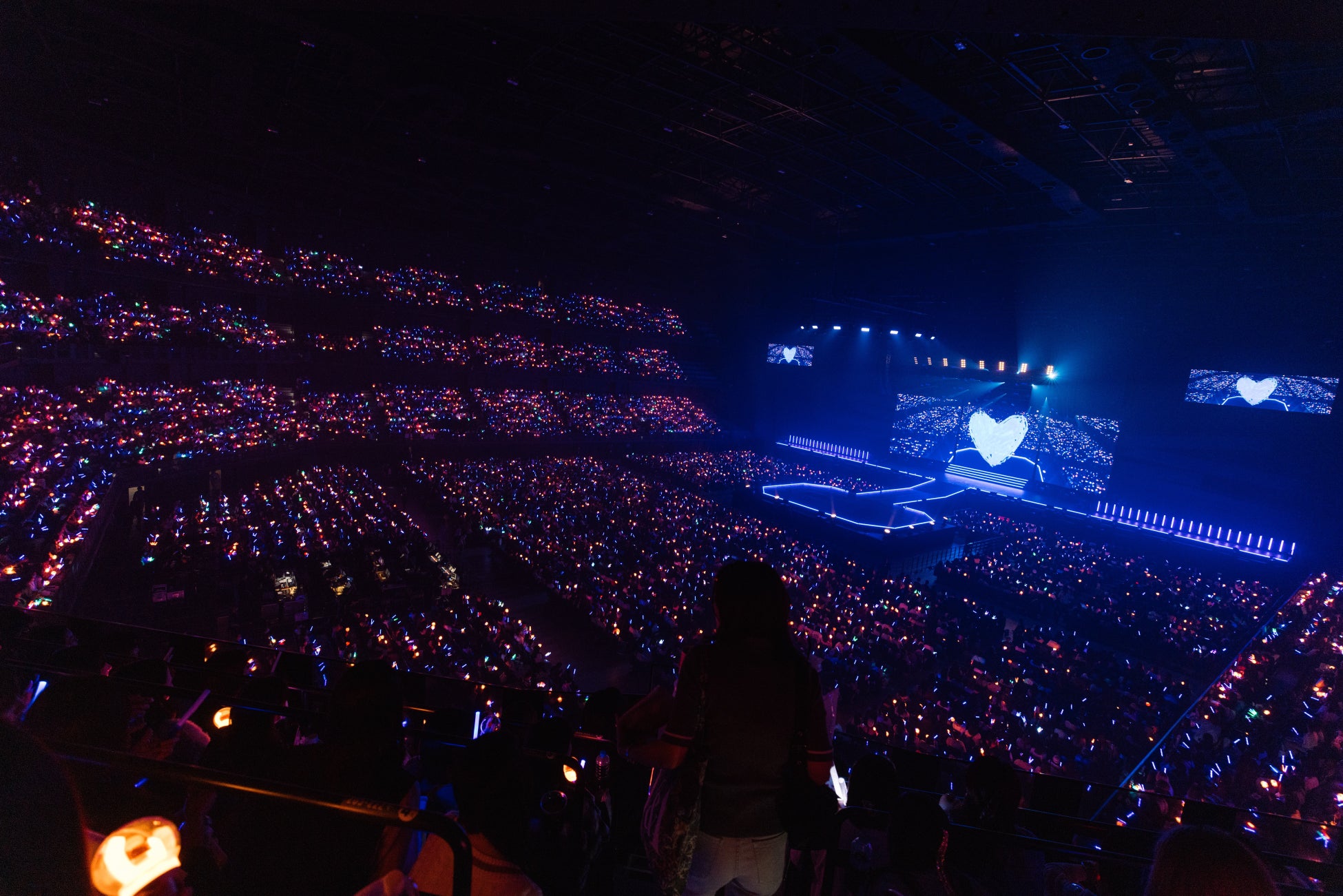 開演前、会場を埋め尽くした約9000人の観客は、配布された⻘いペンライトを準備したり、話に花を咲かせたり。フェスの始まりを今か今かと待ちわびていた。