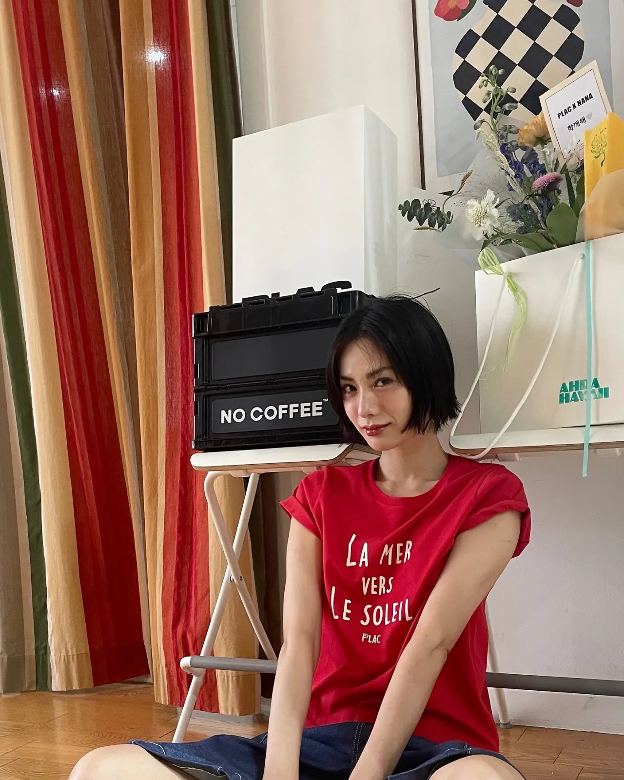 公開された写真の中のナナは、半袖Tシャツを着て細いウエストを露出している。 ナナは痩せすぎてTシャツがだぶだぶになっている。