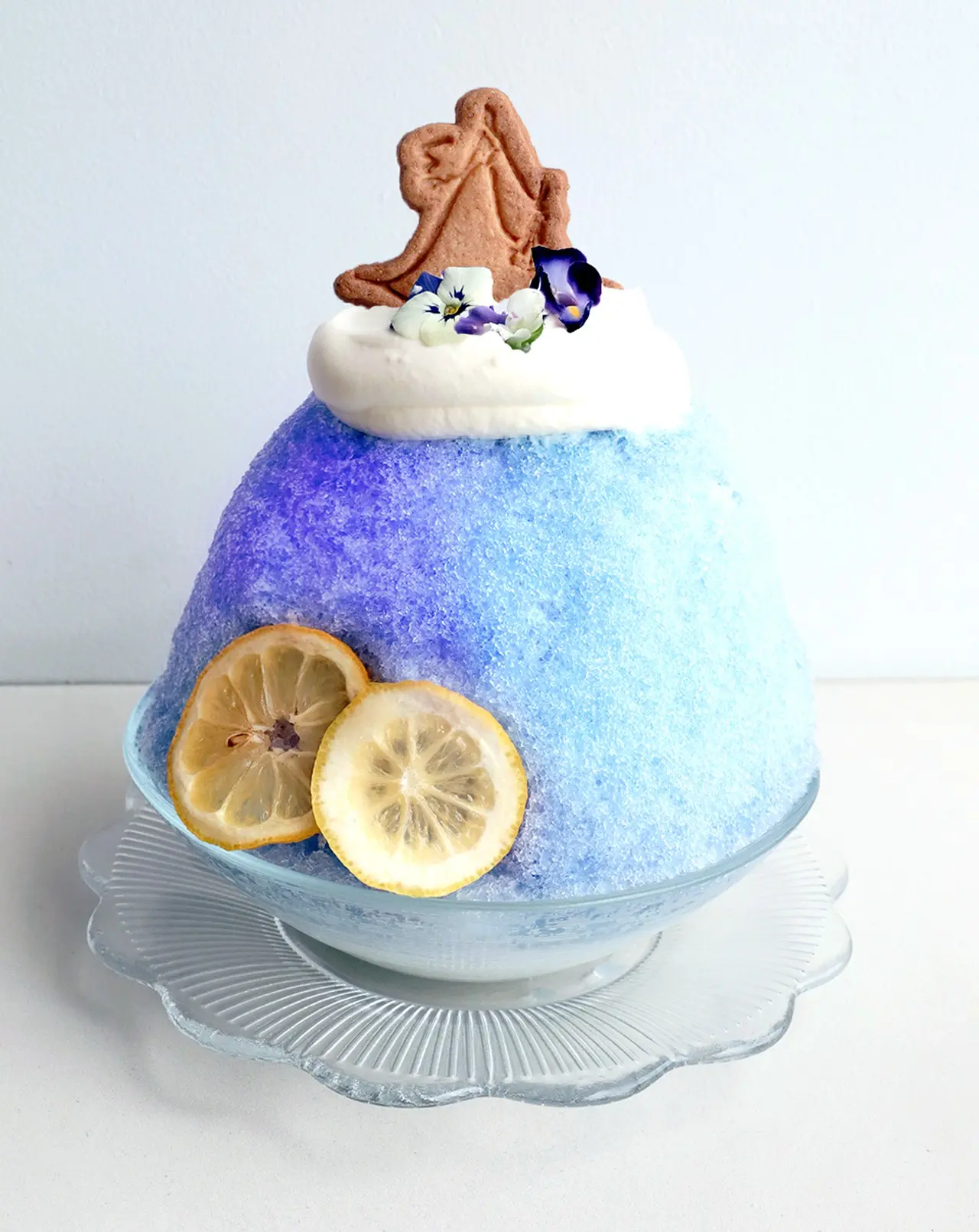 韓国式の新食感のかき氷(糸ピンス)。「ピンス」とは韓国語でかき氷のこと。日本のかき氷とは違い、専用の機械で味を付けた液体を瞬間冷却させながら1ミリ以下の糸状に削ったふわふわなかき氷です。スノーパウダーのようなめらかな口溶けのかき氷。全5種のかき氷に、カフェオリジナル紅茶、ドレスアップティー味が加わりました。甘いミルクピンスの上からティーピンスをコーティングしたことにより、ハーブティーの風味が広がります。レモンシロップをかけると色が変化するので、味だけではなく、見た目も楽しんでいただけます。