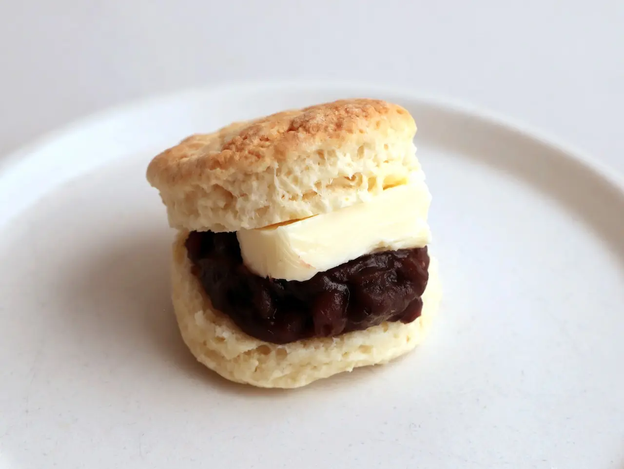 スコーンは外カリッ、中もちふわであんこの甘さとバターの塩味が程よく合う一品。