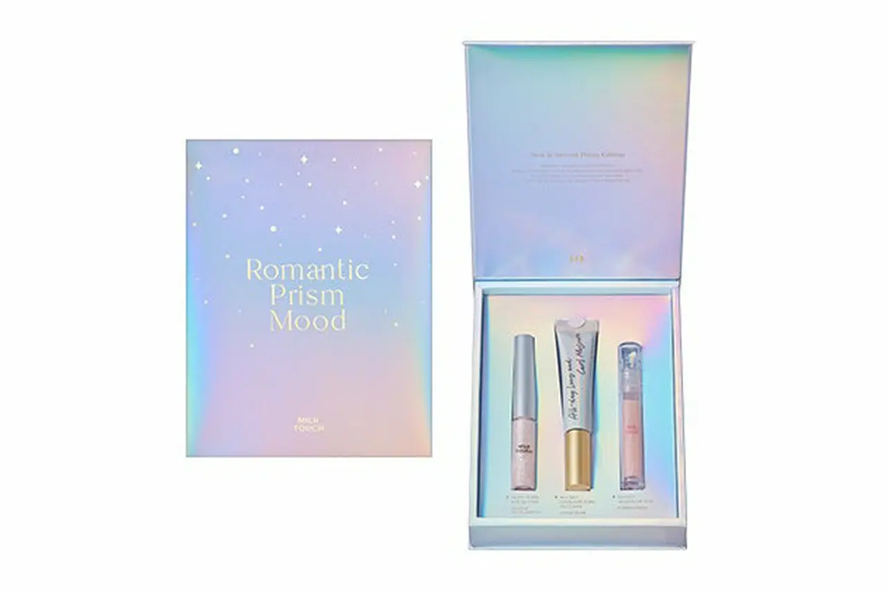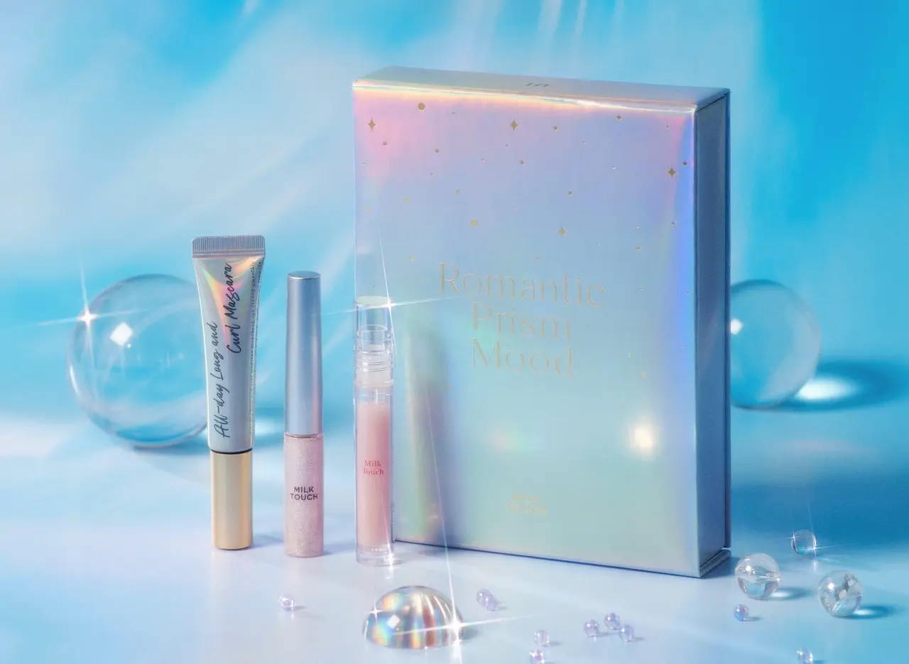 光の角度によって多彩なカラー変化を楽しめるミルクタッチの期間限定プリズムエディションセットで、今年の年末は煌びやかで華やかな上品メイクに挑戦してみてください。