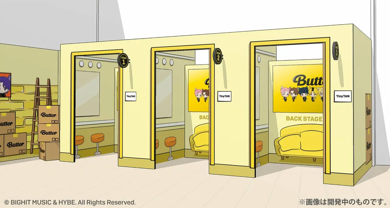 本イベントは、「TinyTANと一緒に過ごす時間」をテーマに、大ヒット曲「Butter」の世界観でTinyTANたちの楽屋に行ったかのような体験ができるアトラクション「TinyTAN BACKSTAGE TOUR」や、もれなくオリジナル景品がもらえるミニゲーム「Let’s DANCE with TinyTAN」「Let’s GO!ガラポン ~Butter ver.~」、イベント限定デザインのおなまえシールが作れる「Names」、フォトスポットなどをお楽しみいただけます。