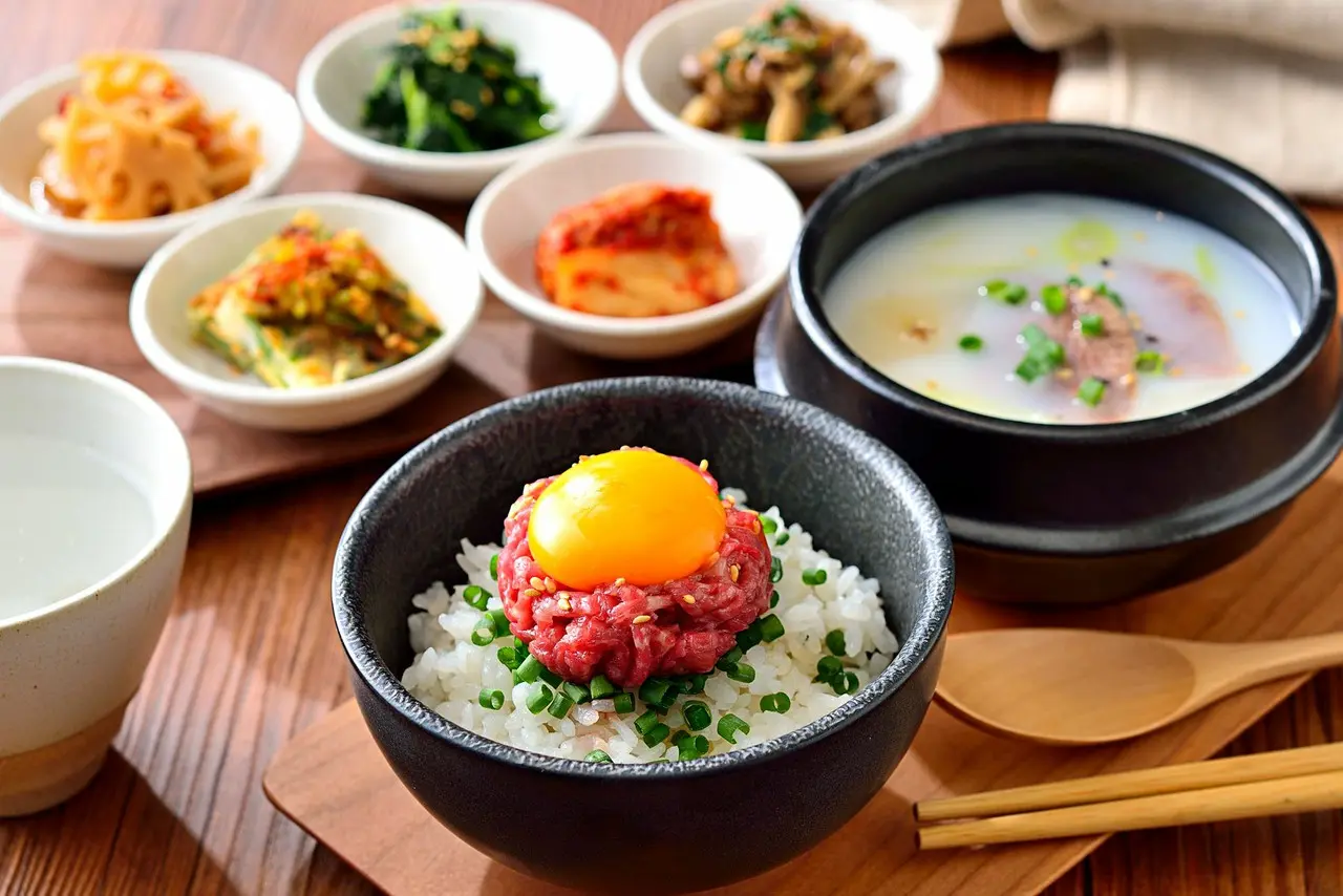 選べるスープと炙り和牛ユッケ丼の韓定食■韓国スイーツ