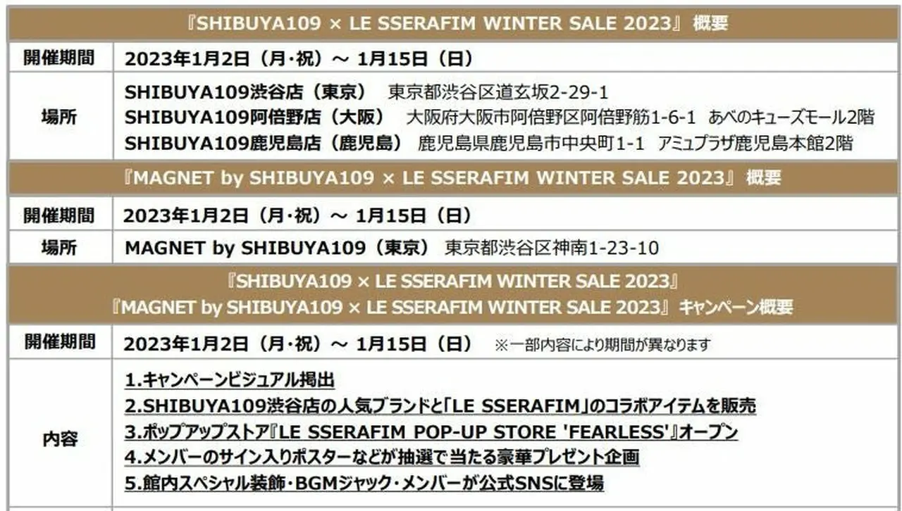 『SHIBUYA109 × LE SSERAFIM WINTER SALE 2023』
