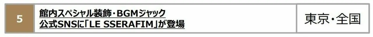 期間中、SHIBUYA109渋谷店、MAGNET by SHIBUYA109館内のBGMを「LE SSERAFIM」がジャックいたします。人気楽曲10曲と日本語楽曲1曲の計11曲と、「LE SSERAFIM」メンバーオリジナルコメントを、お買い物やお食事をしながら、ぜひお楽しみください。