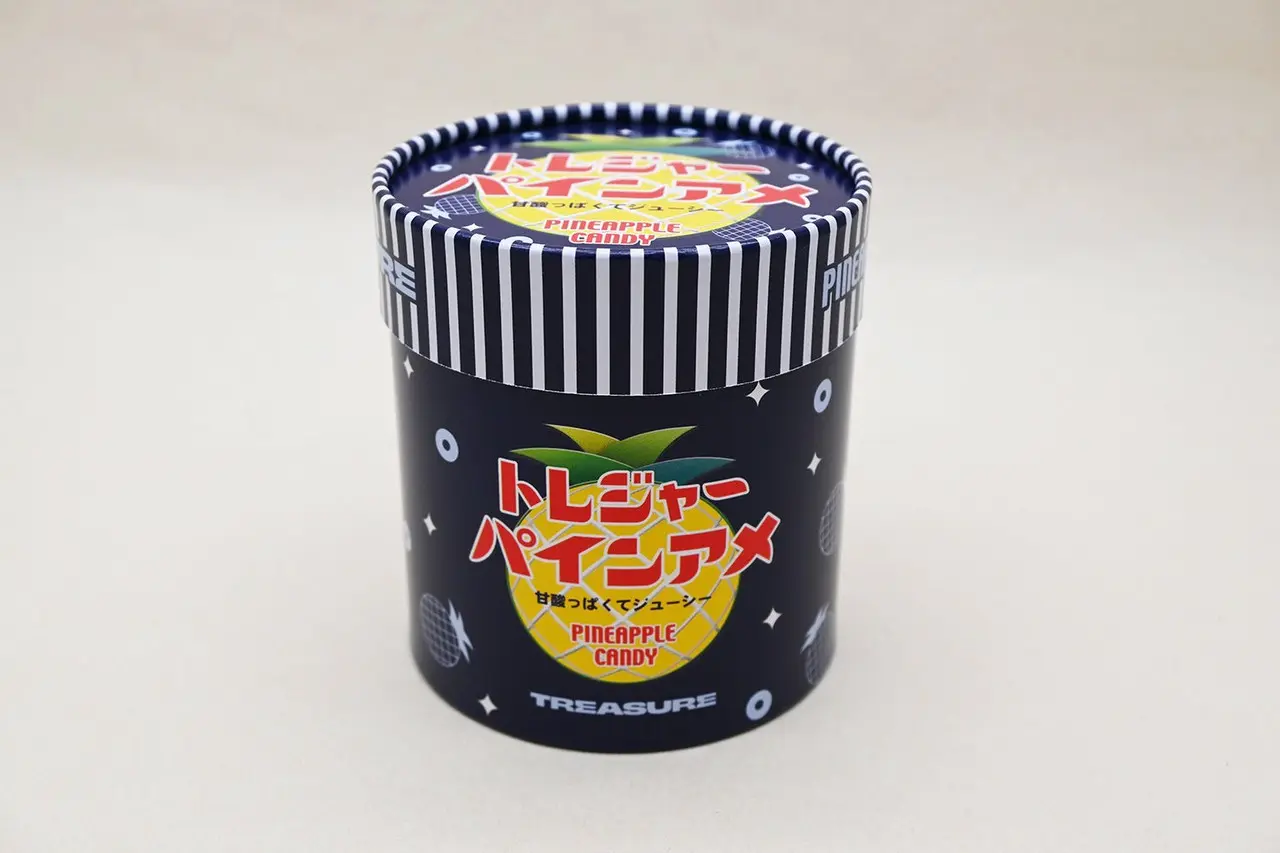 TREASURE初来日ツアーとしては史上最大規模のジャパンツアーに待望の追加公演「TREASURE JAPAN TOUR 2022-23 ~HELLO~ SPECIAL in KYOCERA DOME OSAKA」を記念して発売となる「TREASUREパインアメ」は、関西ではお馴染みのアメちゃん「パインアメ」とご当地コラボした数量限定のTREASURE京セラドーム大阪公演記念コラボパッケージ商品です。全25粒入りの甘酸っぱくてジューシーなパインアメの中に、TREASUREカラーのパインアメが一粒入っています!