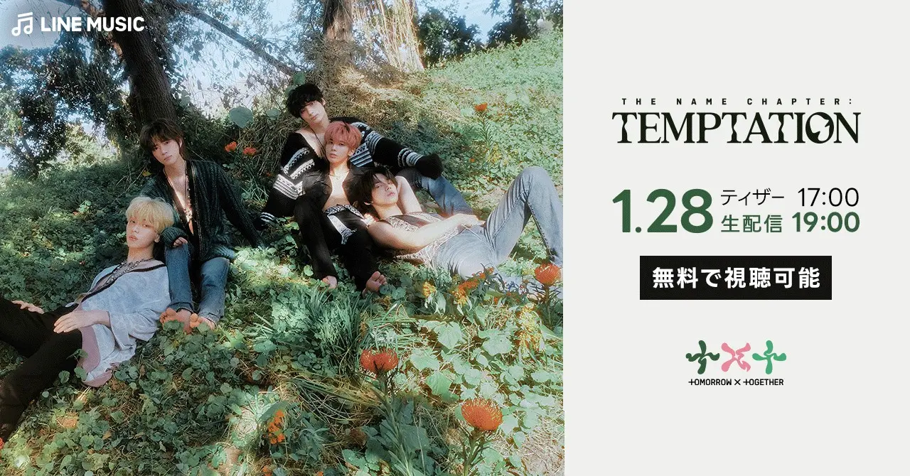 LINE MUSIC株式会社(所在地:東京都新宿区、代表取締役社長:舛田 淳)は、当社が運営する音楽ストリーミングサービス「LINE MUSIC」(iPhone・Android対応)において、世界が注目する韓国の5人組グループTOMORROW X TOGETHERのメンバーが出演する『‘The Name Chapter: TEMPTATION'』を生配信することが決定いたしましたので、お知らせいたします。