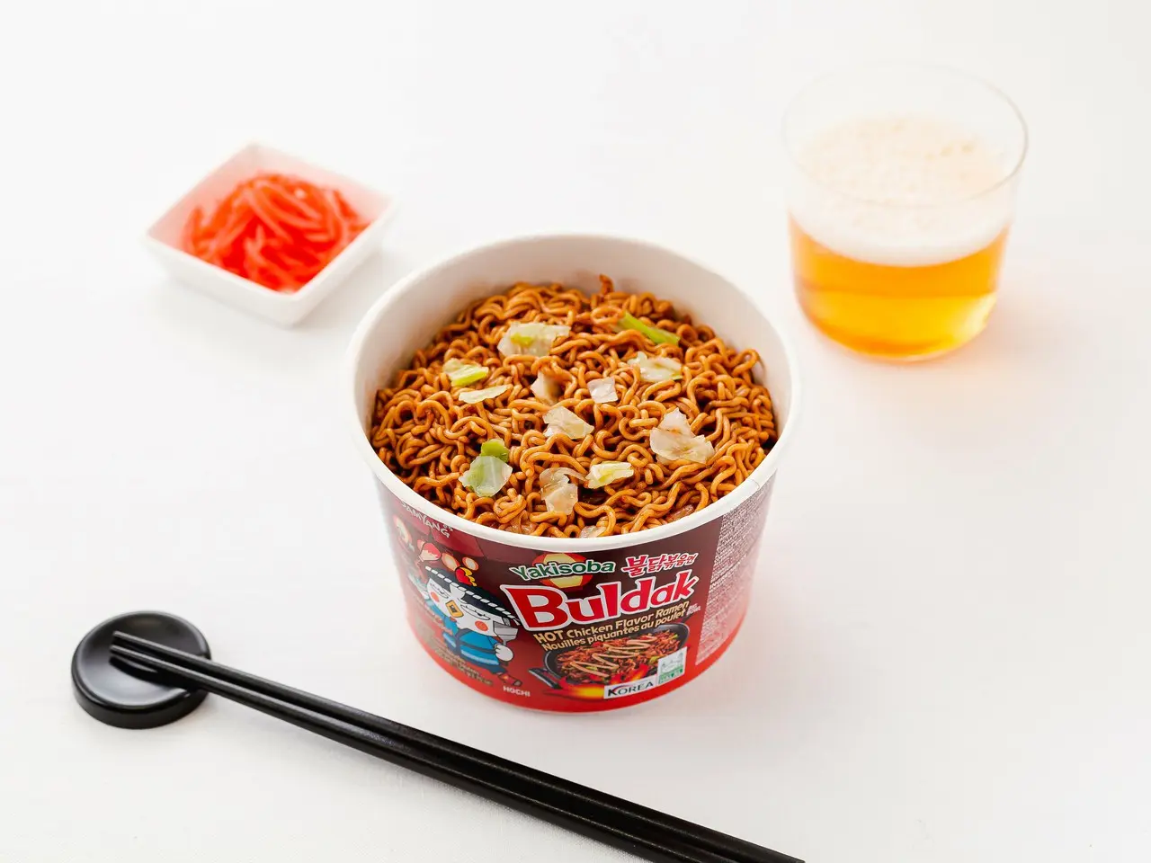 韓国汁なし麺を代表する「ブルダック炒め麺」が熾烈なカップ焼きそば界に挑戦します🔥