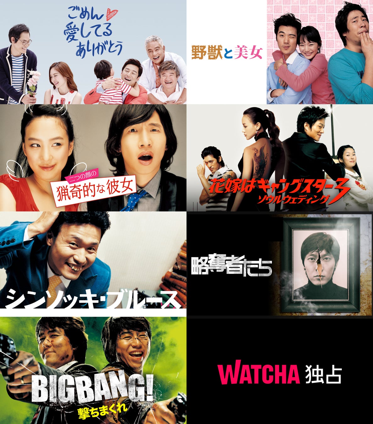 『ごめん、愛してる、ありがとう』『野獣と美女』『二つの顔の猟奇的な彼女』『ソウルウェディング~花嫁はギャングスター3』『略奪者たち』『シンソッキ・ブルース』『BIG BANG! 〜撃ちまくれ〜』の7作品を独占配信開始いたします。『略奪者たち』『ごめん、愛してる、ありがとう』の2作品は日本初配信作品です。