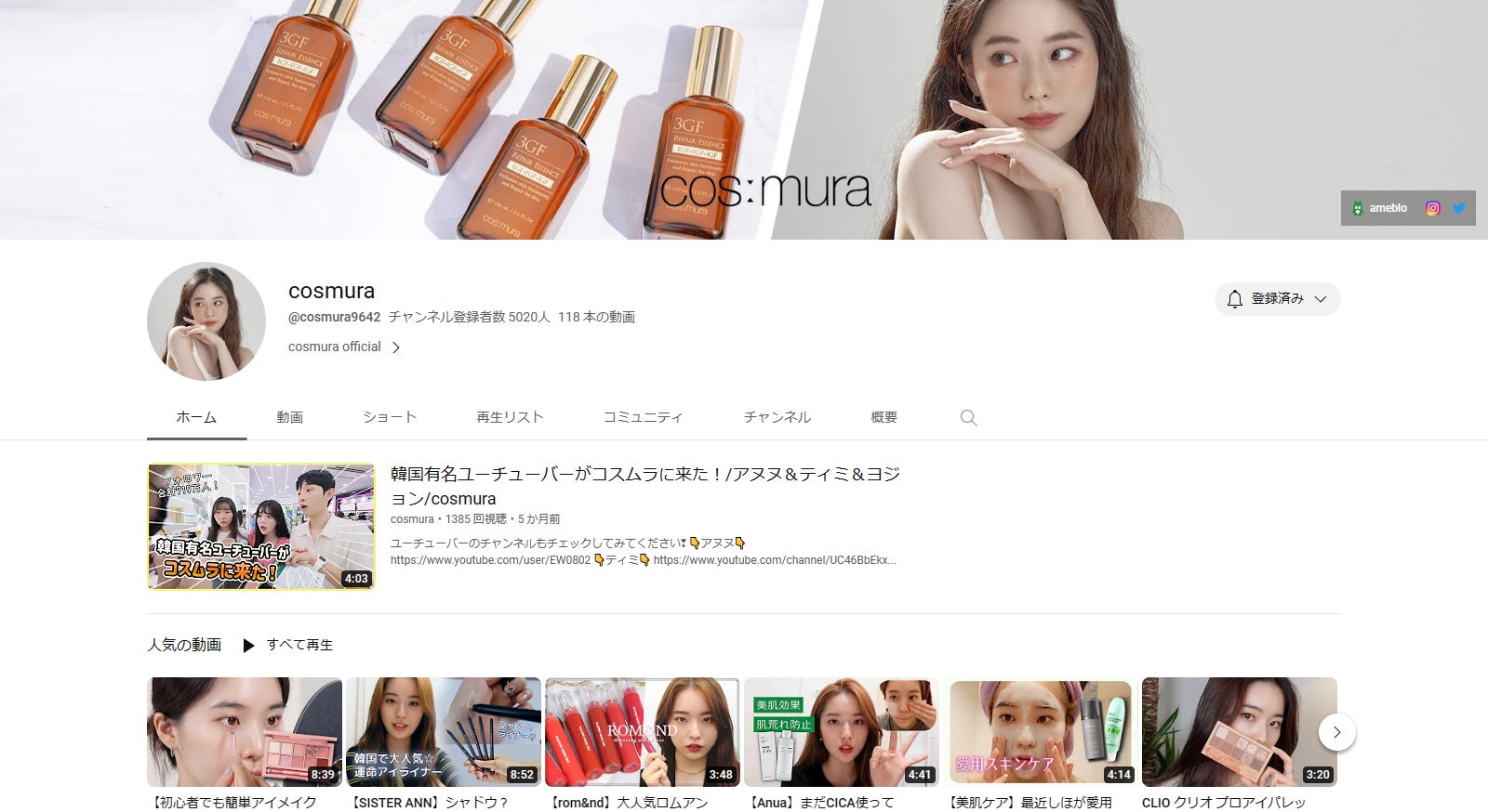 英語のCosmeticと日本語の村(MURA)の造語で自然派コスメを中心に有名な韓国コスメブランドのビューティーアイテムを多数取り扱うビューティーストアです。