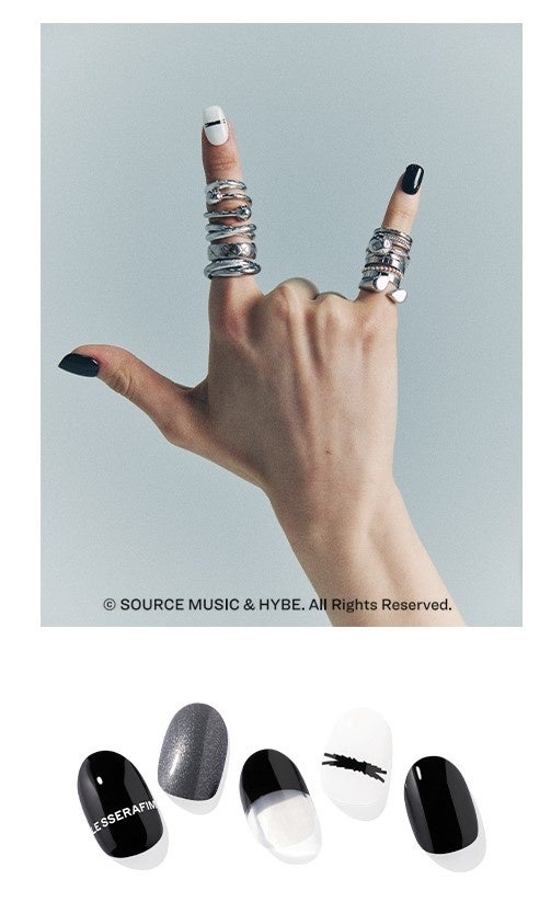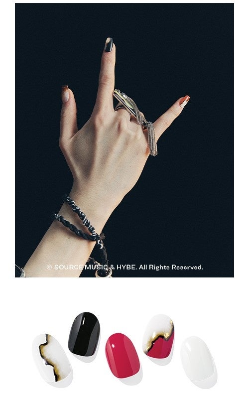 コンセプトやムード、世界観に合わせた、「LE SSERAFIM」のブランドアイデンティティが込められたセルフジェルネイルとなっています。