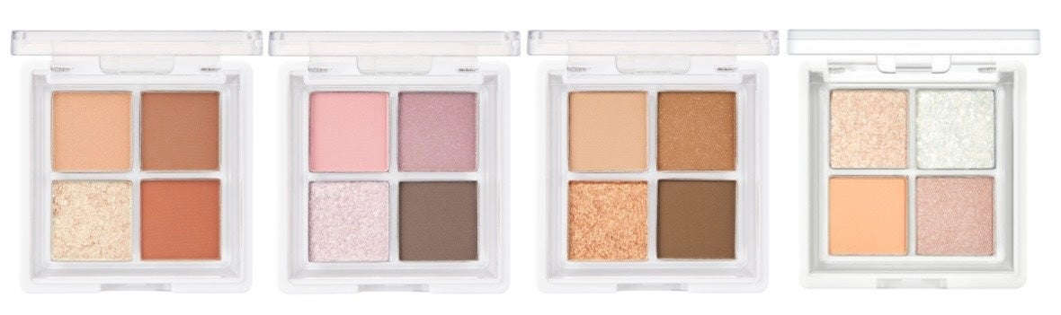 毎日のメイクを簡単に演出する4色パレット。細かい粒子で粉飛びしにくいタイプのアイシャドウ。マット・パールマット・グリッターの構成で、誰でも簡単にレイヤリングを楽しめる!デイリーメイクから特別な日のメイクまでこれ一つにおまかせ。