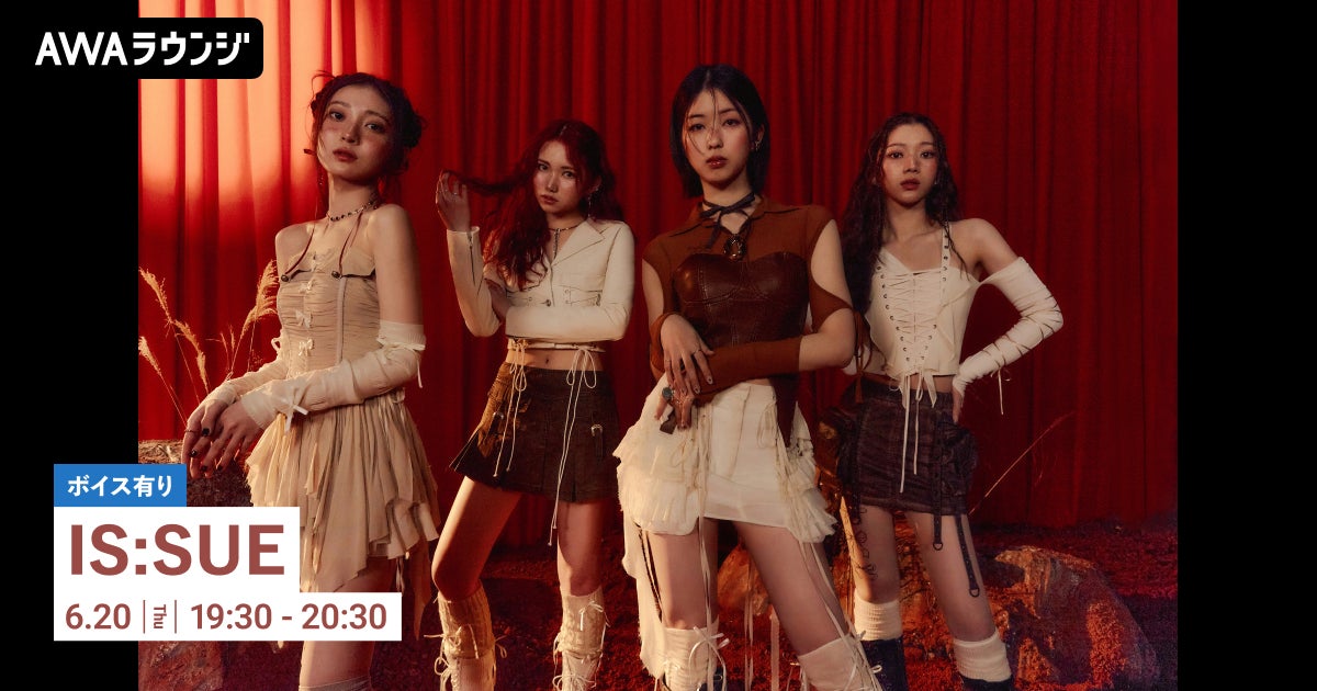 AWA株式会社(本社:東京都港区、代表取締役CEO:冨樫晃己)が運営する、サブスクリプション型(定額制)音楽ストリーミングサービス「AWA(アワ)」は、2024年6月20日(木) 19:30~20:30の1時間に渡り、無料で誰でも参加できるオンライン空間「ラウンジ」でIS:SUEを特集したイベントを開催いたします。
