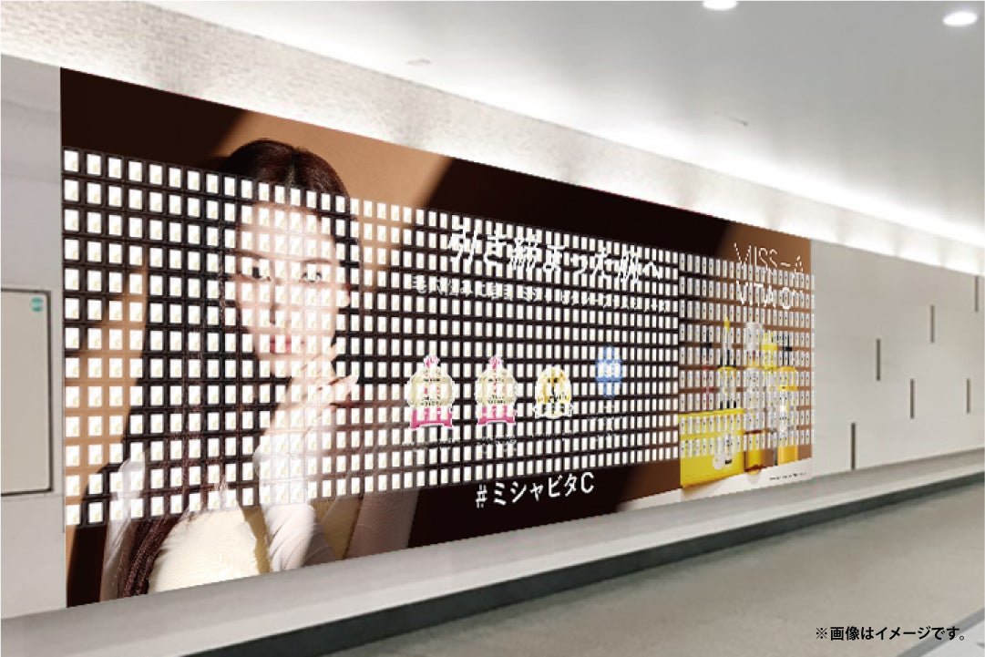 株式会社ミシャジャパン(本社:東京都港区)が展開する、美肌を叶える韓国コスメ「MISSHA(ミシャ)」は、毛穴悩みに着目した人気スキンケア「ミシャ ビタシープラス シリーズ」3アイテムのサンプルをはがして持ち帰ることができるピールオフ広告の第二弾を、2024年7月8日(月)から7月14日(日)の期間、阪急 大阪梅田駅 1階に掲出いたします。サンプルがすべてはがれると、ブランドのミューズであるTWICE SANA(サナ)の特大ビジュアルが登場する仕掛けです。