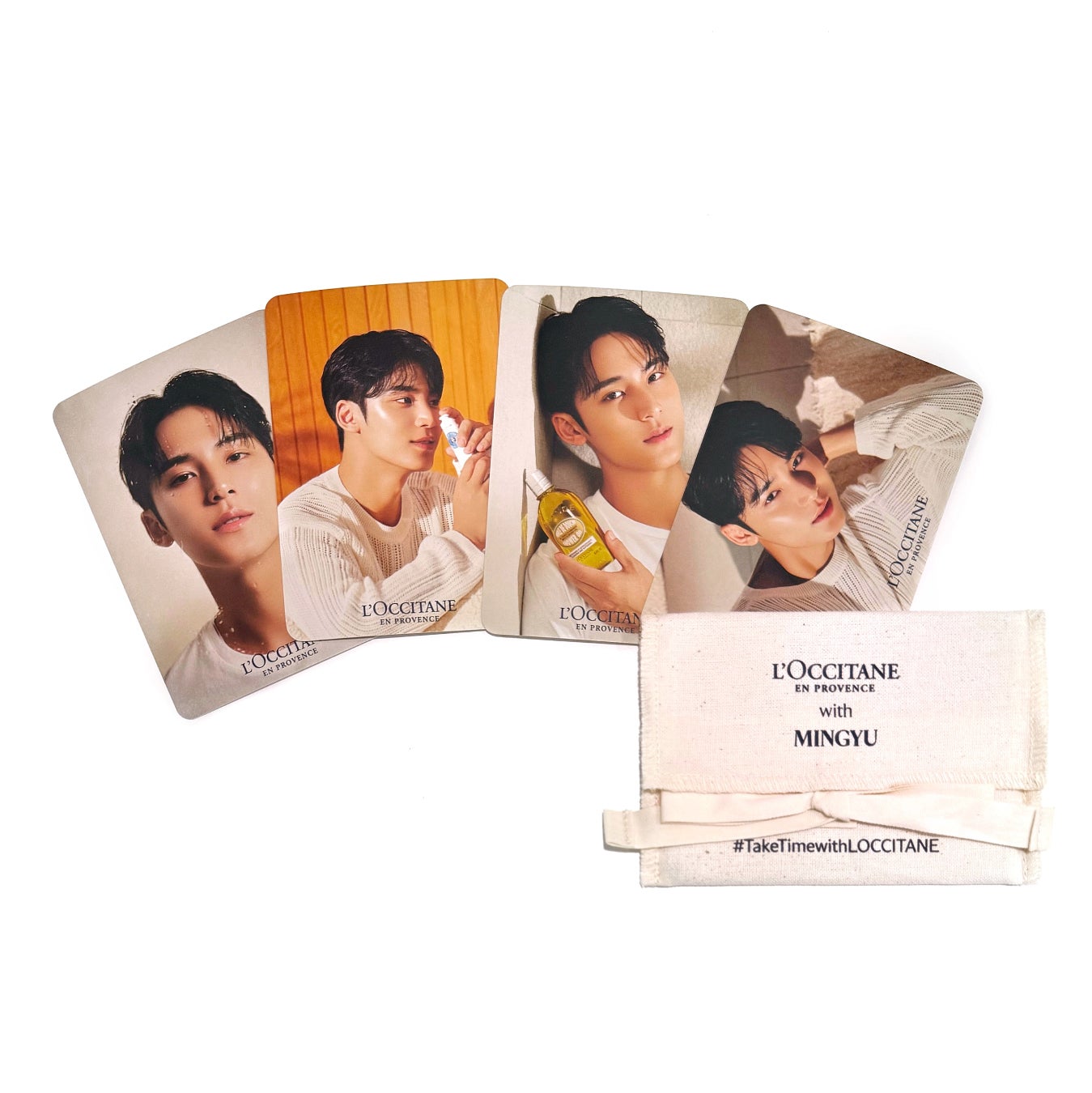 以下のプレゼント実施店舗もしくはロクシタン公式通販サイトにて、アーモンド モイスチャライジング シャワーオイル250mLとシア ハンドクリーム150mL両方をお買い上げの方に、MINGYU グリーティング フォト セットを先着でプレゼントします。