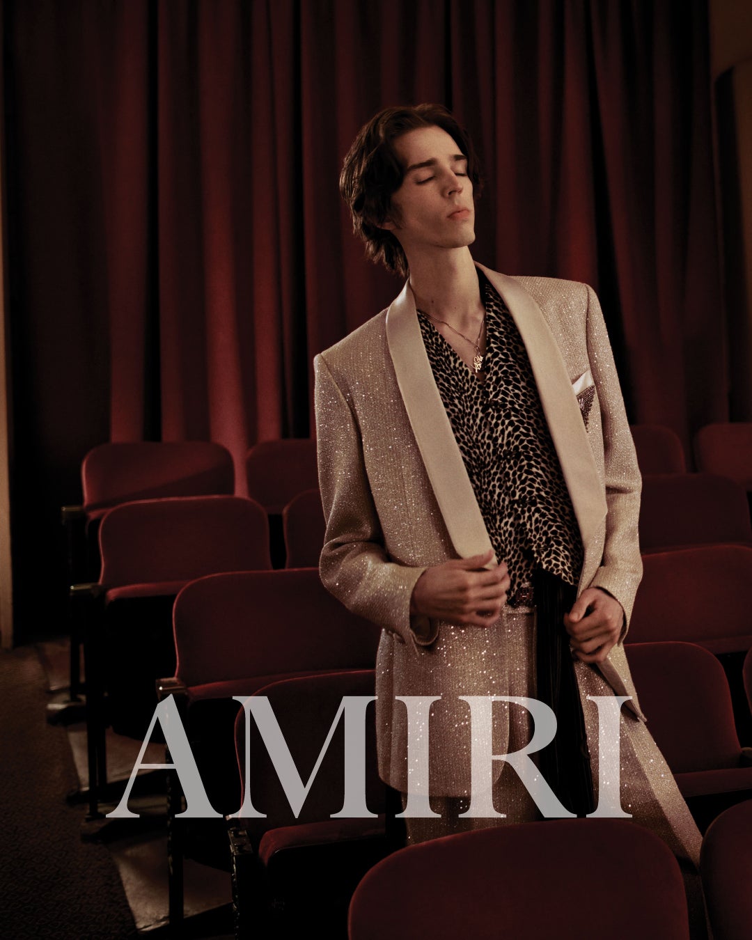 ロサンゼルスの歴史的な場所であるパレス・シアターで撮影されたこのキャンペーンビジュアルは、俳優とファッションの両方をフレームに収め、それぞれの写真に小さな物語がありますが、それは服をまとう俳優たちと彼らが着る洋服の、より大きなストーリーのスナップショットです。新たに登場するアイコンたちのそれぞれのペルソナが研究された写真は、見る者の好奇心を刺激し、もっと知りたいという欲求を駆り立てます。それは彼らの肖像と、AMIRIスピリットのポートレートでもあります。