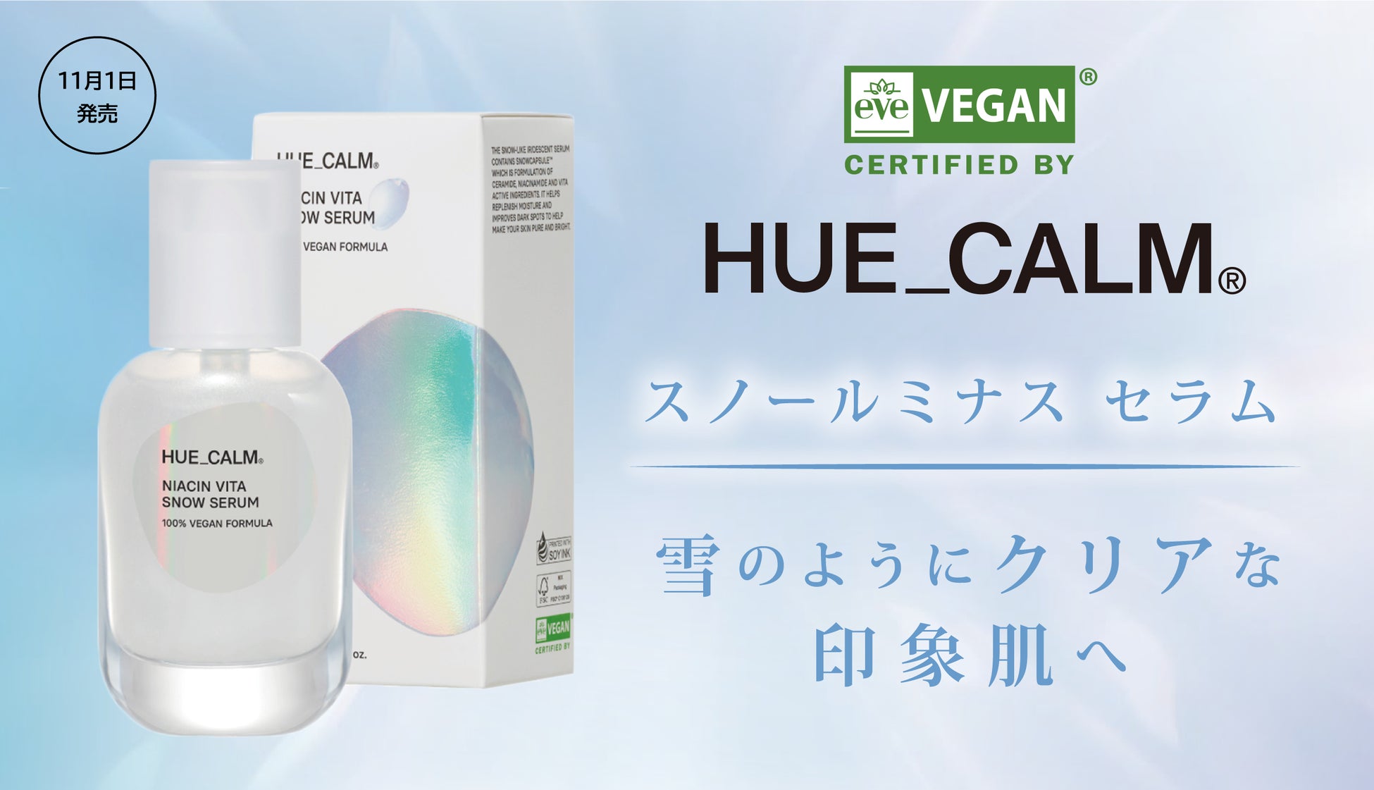 株式会社 WOONGJIN HUECALM(本社:韓国)が展開する韓国発のヴィーガンスキンケアブランド「HUE_CALM(ヒューカム)」は、天然成分と有効成分を配合した、ヴィーガン&クリーンビューティブランド。「肌と心に安らぎを与える。その安らぎから美しさが生まれる。」をコンセプトに全商品が、ヨーロッパヴィーガンの認証得ている本格ヴィーガンスキンケアブランド。