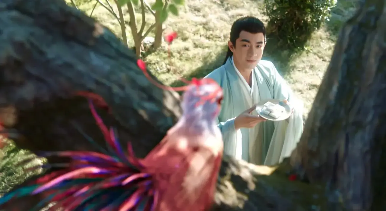 第1話は冒頭から圧巻のスケールで幕を開ける。霊界の戦神であり“碧蒼王”と呼ばれる沈璃(シェン・リー/チャオ・リーイン)は仙界との政略結婚を命じられるが、どうしても受け入れることができず、人間界へ逃亡。追っ手との壮絶な闘いの果てに負傷し霊力を失って、鳳凰のヒナの姿に変わってしまう。やがて肉売りに捕らえられ、食材として売りに出されそうになる彼女を救うのが、ケニー・リン演じる謎めいた書生・行雲(シンジー)だ。偶然の出会いから、彼は小さな鳳凰を自らの屋敷へ連れ帰る。