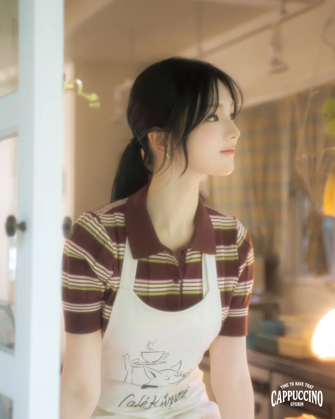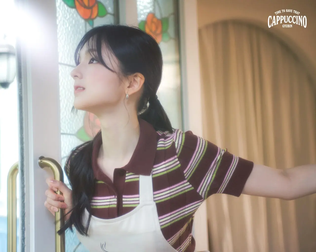 所属事務所 LIVEWORKS COMPANY(ライブワークスカンパニー) は、10月16日午後9時(韓国時間)にGYUBINの公式SNSを通じて、愛らしい魅力が溢れるコンセプトフォトを公開。瞬く間にファンの注目を集めた 公開された写真では、曲名「CAPPUCCINO」にふさわしい“アルバイト店員”をテーマに、カフェの制服を思わせるスタイリングで登場。