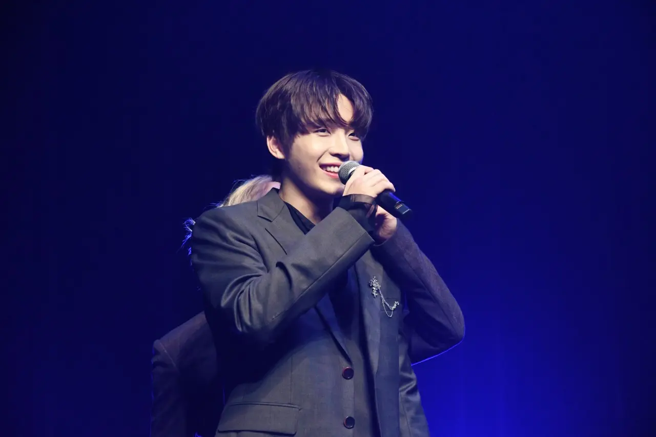 日本で初のお披露目ライブイベント開催となり、「昨日の夜、眠れた?」と尋ねられるとジンフは「ぜんぜん眠れなかったです」と振り返った。アインは「すごくワクワクしています。僕たちはここから始まり、12月6日には1stミニアルバム『Harmony』がリリースされます。すごく嬉しいです」と声を弾ませた。