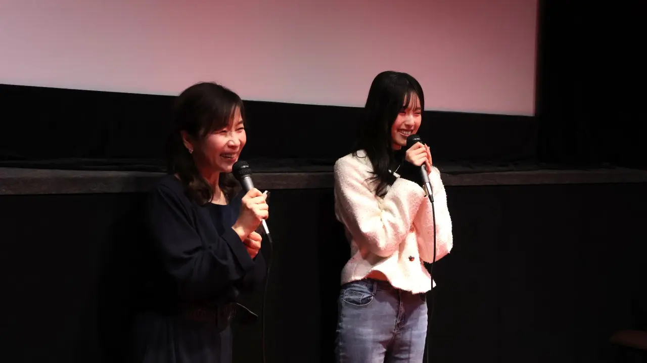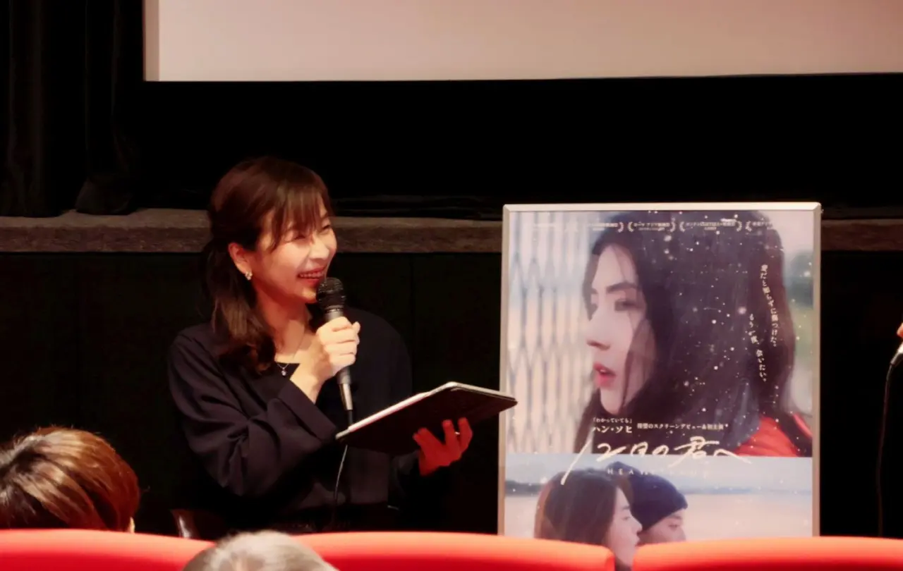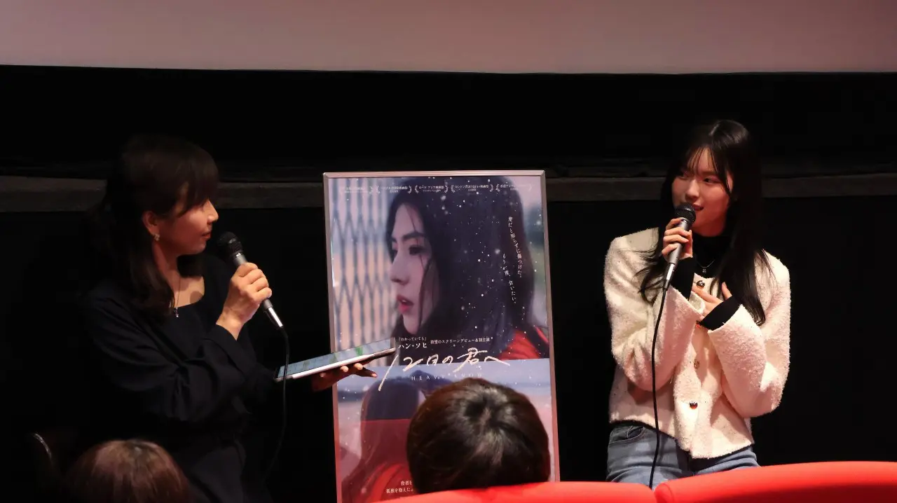 映画『12月の君へ』は、俳優を夢見る高校生スアン(ハン・ヘイン)の前に現れた、人気俳優の転校生ソル(ハン・ソヒ)、二人の淡く切ない愛の詩。孤独を抱えた少女たちが出会い、「友情」と「恋」の狭間で揺れ動く“純白の冬”が始まる、冬にぴったりの淡く切ないクィア・ロマンスとして、SNSでも話題沸騰中!本作は、韓国ドラマ「わかっていても」などで大人気となったハン・ソヒのスクリーンデビュー作としても注目されており、公開翌日の12月6日(土)には<ハン・ソヒを語ろう!>と題したトークイベントを開催。ゲストはハン・ソヒがロールモデルであると公言する、若者を中心に大人気の村谷はるな(俳優/インフルエンサー)。村谷は、“日本一かわいい高校生”を決めるコンテスト『女子高生ミスコン 2022』グランプリで、ABEMAの恋愛リアリティー番組では登場するやいなや、「ハン・ソヒに似ている!」と話題になった。司会を務めるのは “ヨギソダイブの通訳さん”で親しまれるみょんふぁ(女優・司会・ナレーション・通訳・翻訳)さん。そんな二人に登壇してもらった本イベントは、完売御礼の中スタートした。