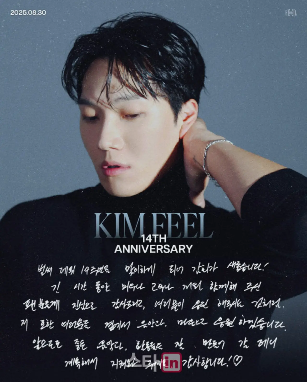 キム・ピルは30日0時、公式SNSのアカウントを通じて、デビュー14周年の祝電イメージを公開した。