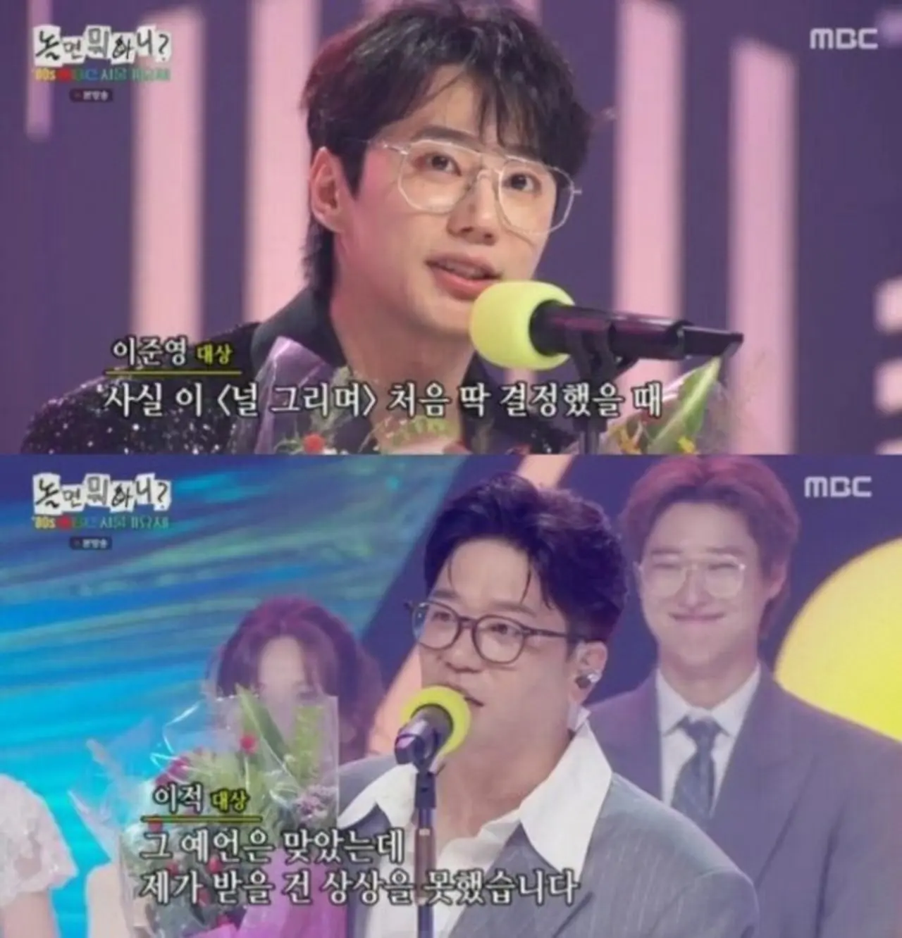 栄誉の大賞主人公はイ・ジョクとイ・ジュニョンが選ばれた。人気賞と大賞の2冠王を獲得したイ・ジュニョンは「僕に80年代バイブスを教えてくれた父に感謝する。『君を描きながら』を選曲した時はとても心配だったが、パク・ナムジョン先輩が素敵に舞台をされたので一生懸命やらなければという気持ちで臨んだ」と感想を伝えた。イ・ジョクは「僕が受賞するとは想像できなかった。僕の人生でとてつもなく幸せな時間だった」と感謝のあいさつを伝えた。