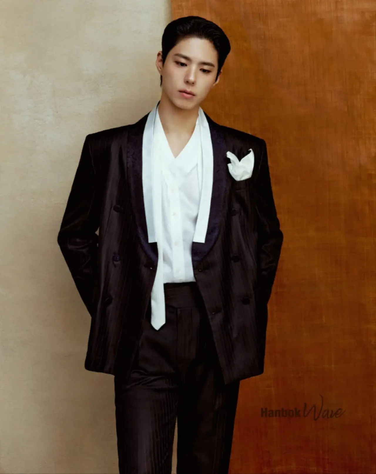 韓服ウェーブは、力量ある韓服デザイナーと韓流文化芸術人がコラボし、新しい韓服を開発して世界の舞台へ披露する文化体育観光部推進事業である。昨年は女優のキム・テリ、2023年はスジ(元miss A)、2022年には元フィギュアスケーターのキム・ヨナが参加した。ことしは、事業で初めて男性用の韓服のカッコよさにスポットを当てようと、パク・ボゴムを男性単独モデルに選定した。