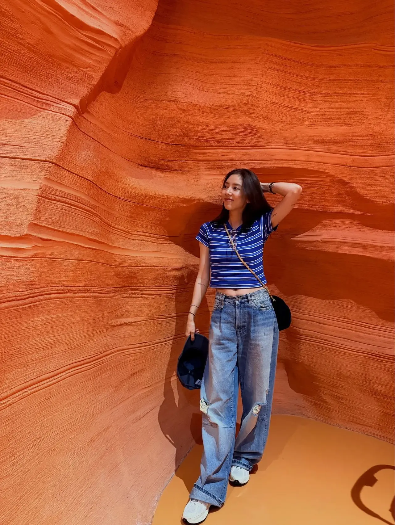公開された写真の中には、ソン・ダムビが米国のアンテロープキャニオンのような場所でポーズを取っている。 クロップTシャツを着たソン・ダムビのスリムな姿が感嘆を誘う。