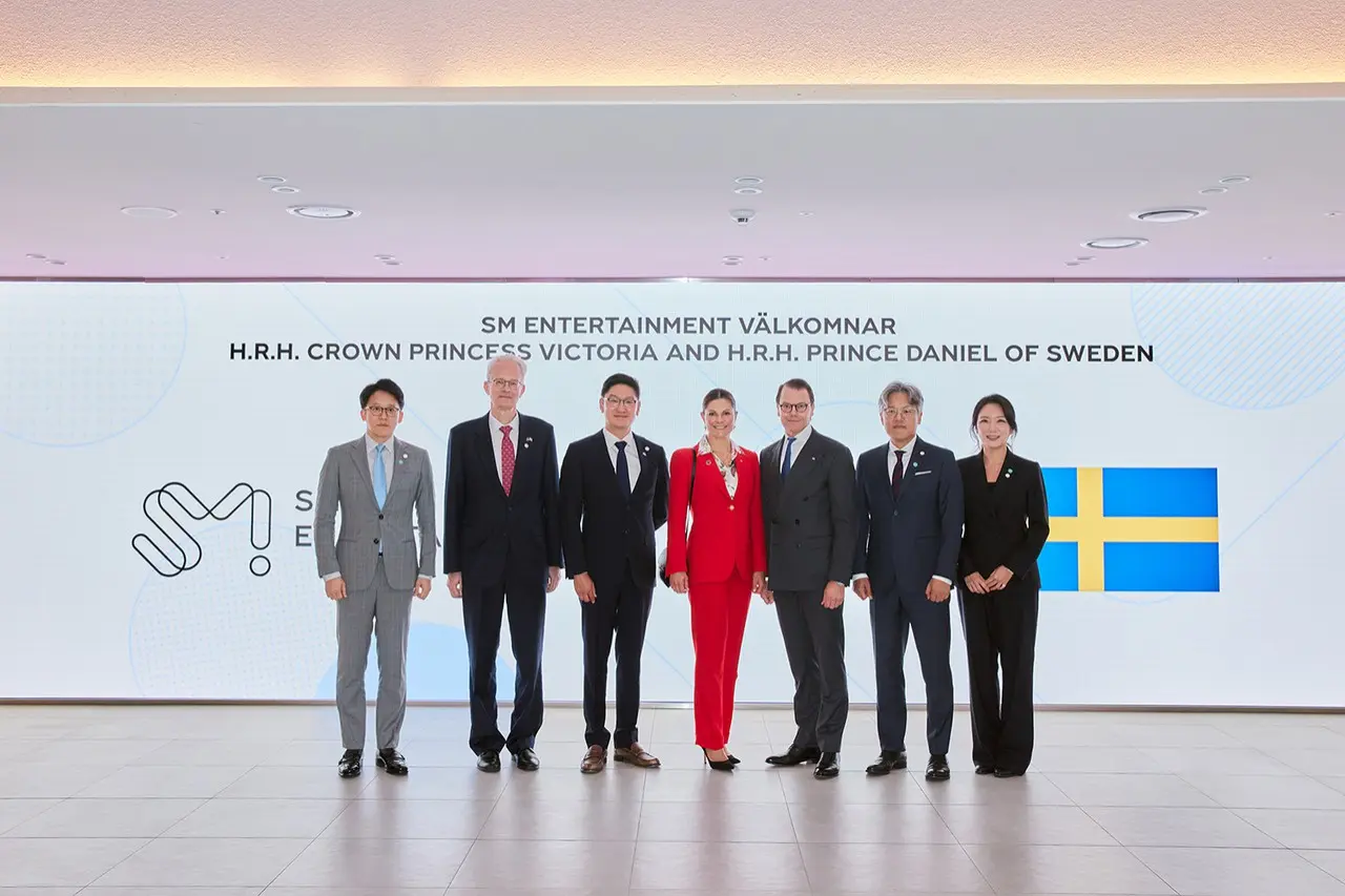 今回の訪問はスウェーデン皇太子夫妻の公式訪韓日程の中で文化・創意産業交流の一環として行われ、SMエンターテインメントのチャン・チョルヒョク、タク・ヨンジュン共同代表理事、イ・ソンスCAO(Chief A&R Officer)、チェ・ジョンミンCGO(Chief Global Officer)などが一行を迎えた。