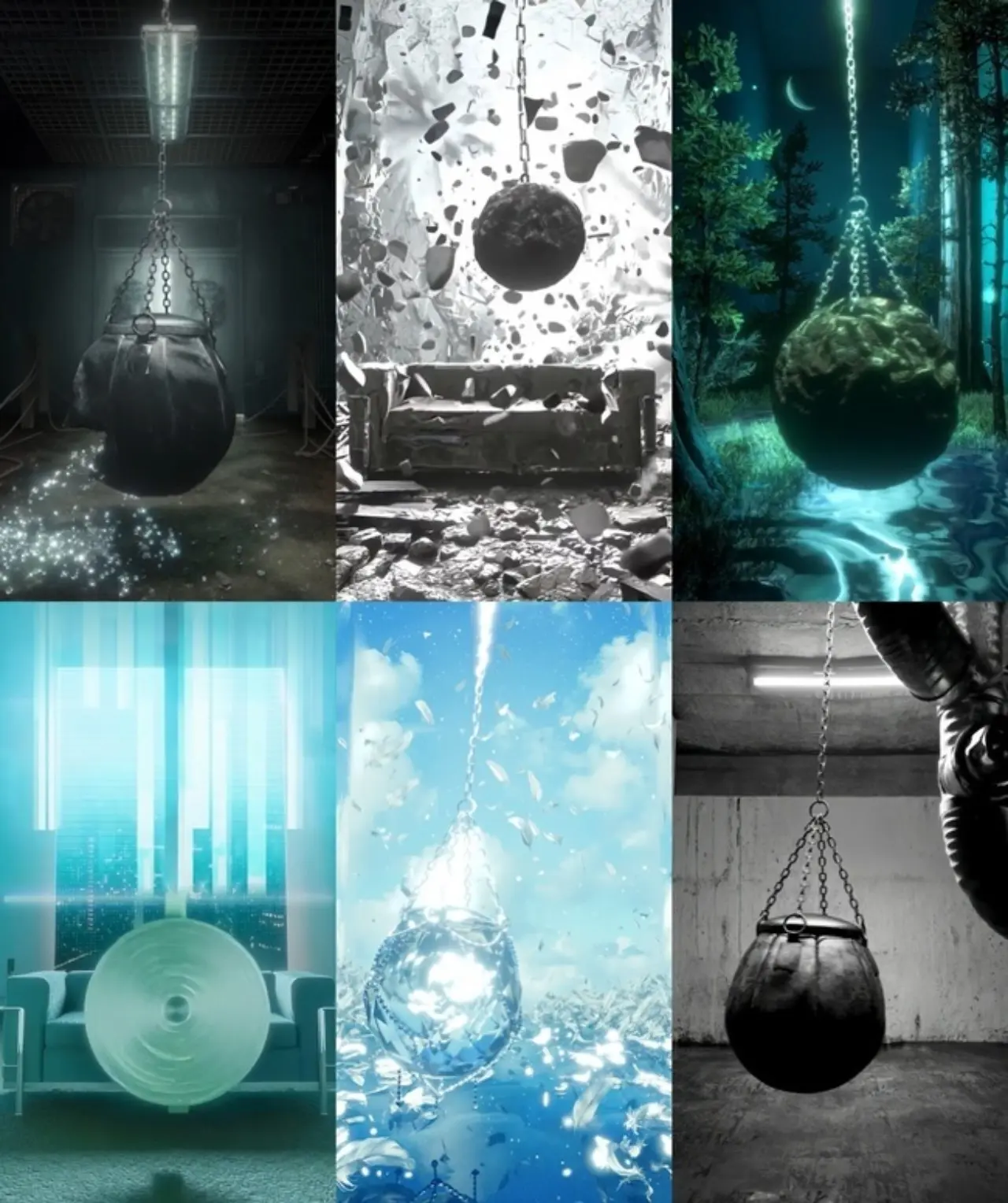 盛り上がる音楽に合わせてサンドバックが左右に揺れ、神秘的な雰囲気を醸し出し、ちらつく照明と揺れる扉は緊張感を加える。落ちた羽毛が集まって翼をなす場面、照明によってひねる波がひとつの波のようにつながる瞬間など、象徴的なイメージが積もってみる人の没入感を高めた。