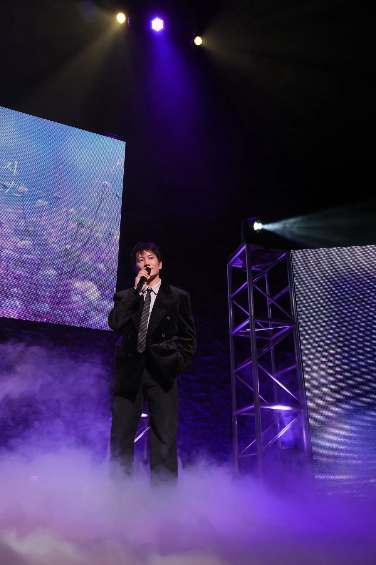 そして、力を出してほしいという思いを込めて用意した曲が披露されることに。チソンはラジオDJブース風の席からゆっくりと立ち上がり、ステージ前の椅子に腰をかけ、柔らかなライトに照らされながら、サザンオールスターズの「TSUNAMI」を歌いはじめる。「愛や痛みを抱えて生きる強さ」というメッセージを込めながら、深く温かい声で歌い上げると、会場は静かな感動に包まれた。