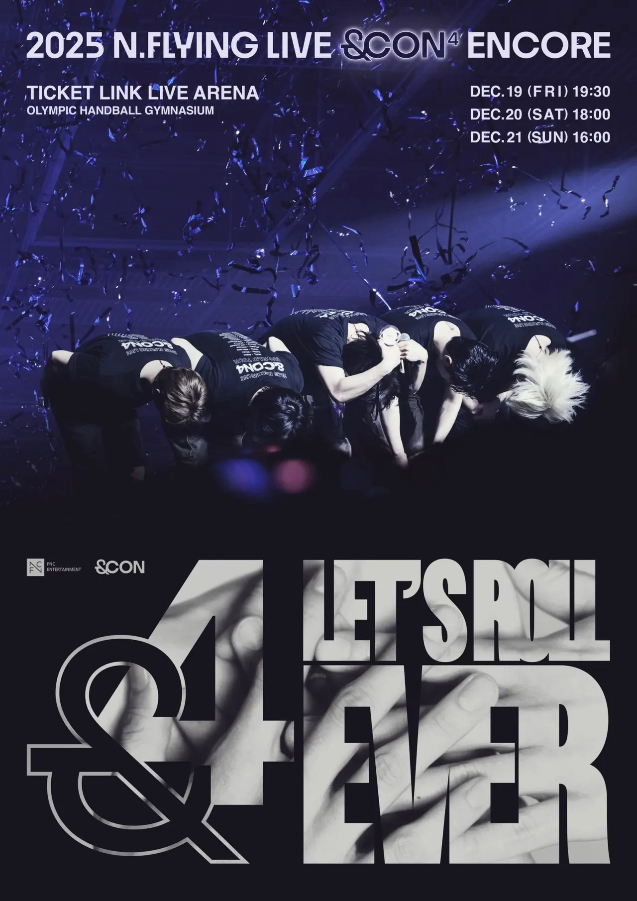 「N.Flying」は、12月19日から21日までの3日間、ソウル・チケットリンクライブアリーナ(旧オリンピック公園ハンドボール競技場)で「2025 N.Flying LIVE ‘&CON4 ENCORE : Let’s Roll &4EVER’」を開催する。