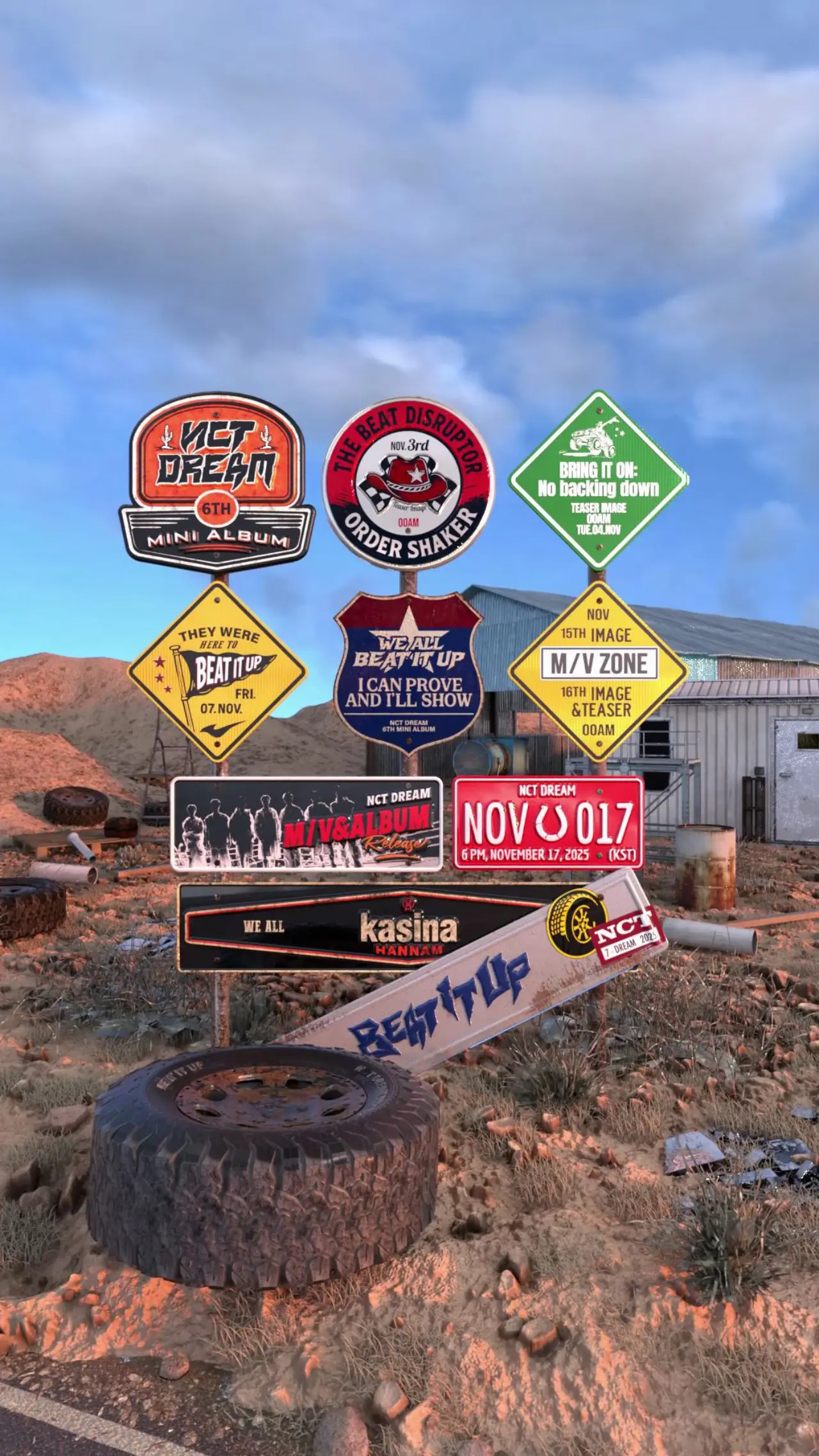 本日(28日)午前0時、「NCT DREAM」の公式SNSチャンネルに掲載された6thミニアルバム「Beat It Up」のスケジュールポスターには、自由な砂漠に立てられた看板の中に多彩なコンテンツ公開スケジュールが記されており、注目を集めた。