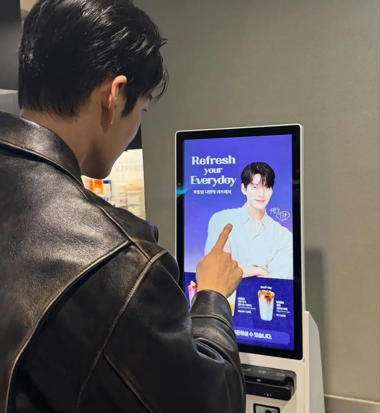 一緒に公開された写真には、自動券売機でコーヒー注文をしたり、自身の広告カットの前でポーズを取っているキム・ウビンの姿が盛り込んだ。