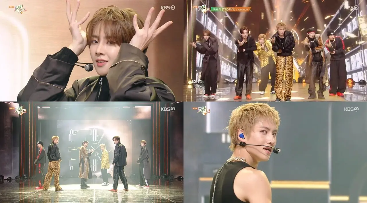 グループ「82MAJOR」(ナム・サンモ、パク・ソクジュン、ユン・イェチャン、チョ・ソンイル、ファン・ソンビン、キム・ドギュン)は、7日午後5時5分に放送されたKBS2「ミュージックバンク」に出演し、4枚目ミニアルバムのタイトル曲「TROPHY」のステージを披露した。
