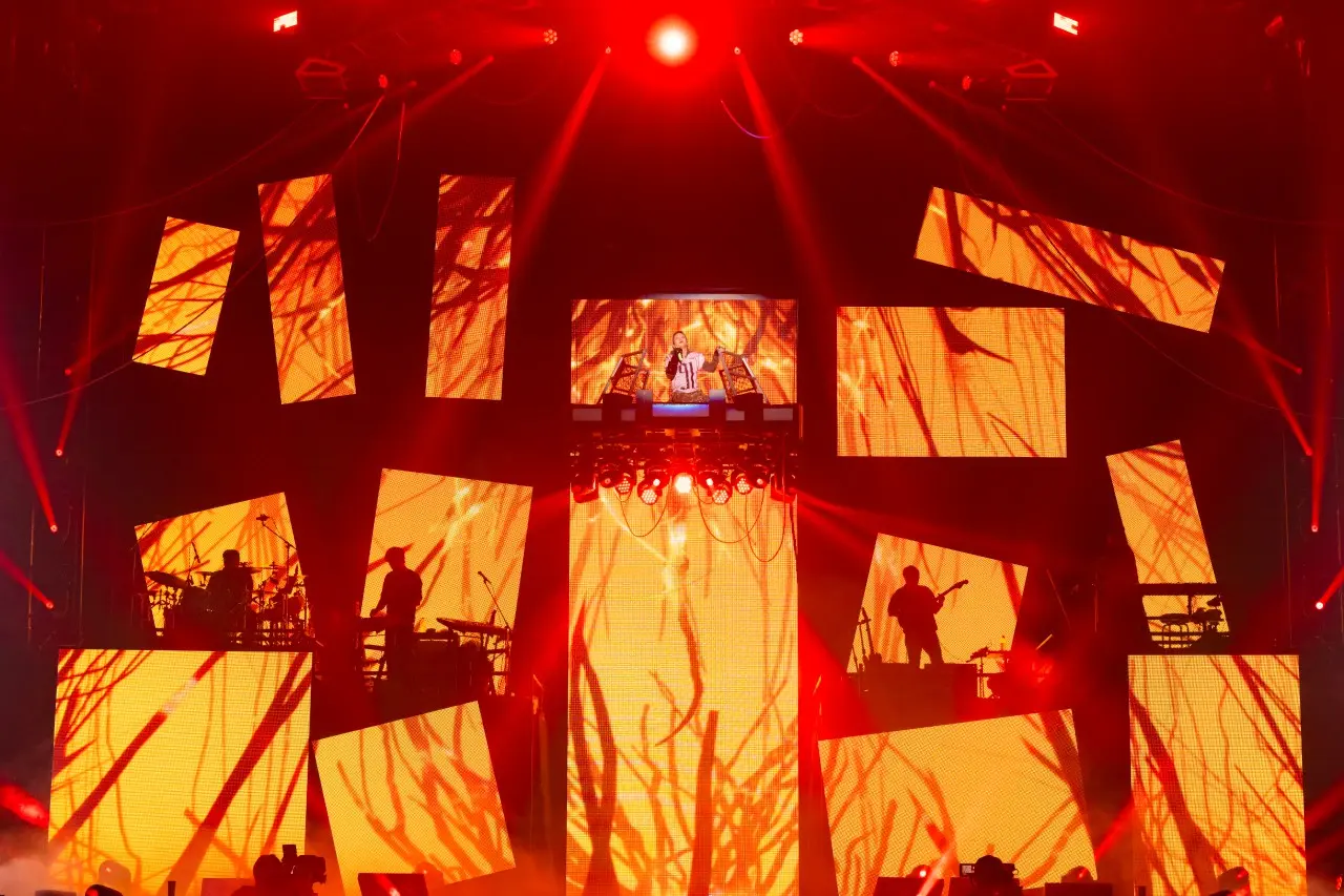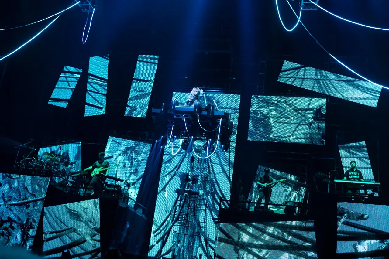 これまで何度も聴いたり、観たりしていた過去のアルバムのリード曲は、今回のライブテーマに合う演出やアレンジが加えられ新たな解釈でパフォーマンスされる。「BAD LOVE」から「Gasoline」という流れでは、青い炎と赤い炎のような対極の熱さを放って観客を圧倒。「BAD~」では床に跪いて許しを請うような姿を見せたかと思えば、「Gasoline」ではせり上がるセンターステージに立ち、炎の演出の中で周囲を先導していくような力強さを見せる。曲自体が持つポテンシャルが最大限に引き出されていた。