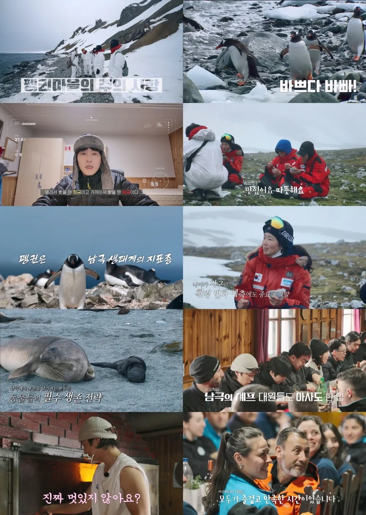 彼らが到着した南極特別保護区域「ASPA 171」は、ジェンツーペンギンやヒゲペンギンをはじめ、様々な種類の藻類と数十種の苔や地衣類、植物が生息する生態的科学的保護価値の高い地域だ。特別保護区域であるため、出演者と制作スタッフともに事前に許可を受け、いずれも防疫服を着用して注意事項を熟知した後に入場した。ペンギン研究チームは4人組が配達したお粥を美味しく食べながら凍りついた体をあたためた。