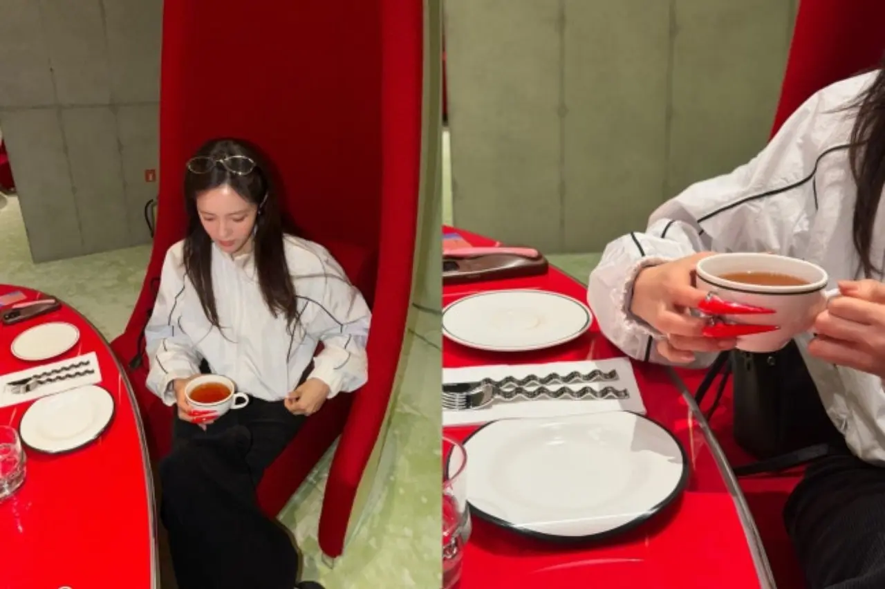 公開された写真には、ヒョミンが「ジェントルモンスター」社屋の社内食堂で、食事中の姿が収められている。特に視線を止めたのは、まさにヒョミンの爪。マディ・パンジ(指の関節にはめる指輪)をはめたヒョミンは、爪の錯視効果を起こして驚きを誘う。